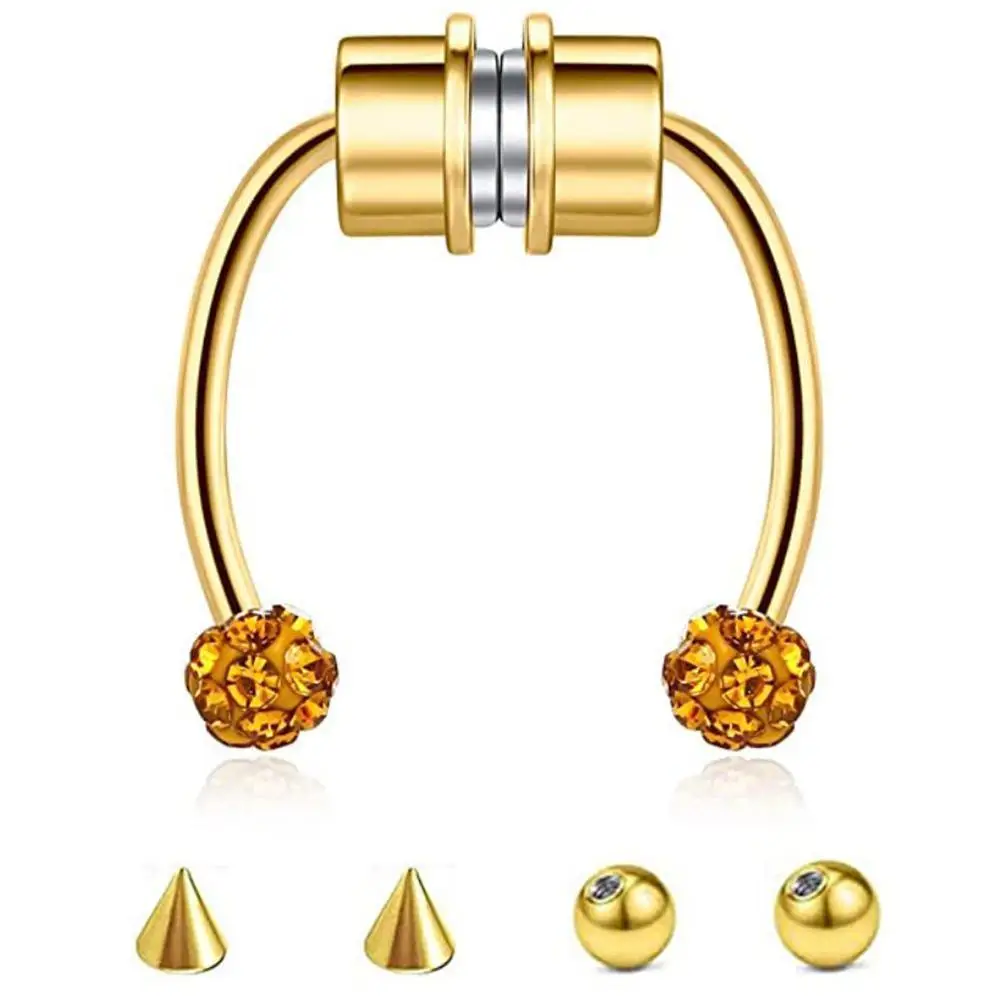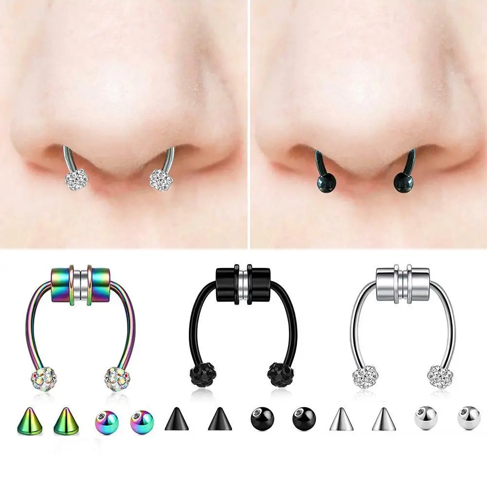 1 шт. новый дизайн U образный фальшивый нос кольцо кольца для пирсинга перегородки носа кольца Сталь ложный магнит Нос Кольца с бриллиантами поддельный пирсинг ювелирные изделия