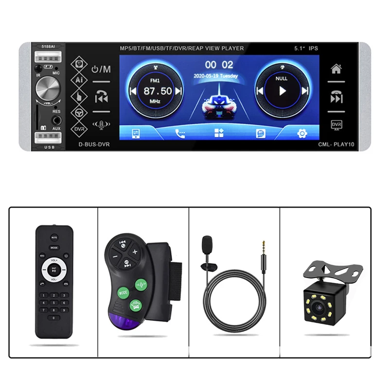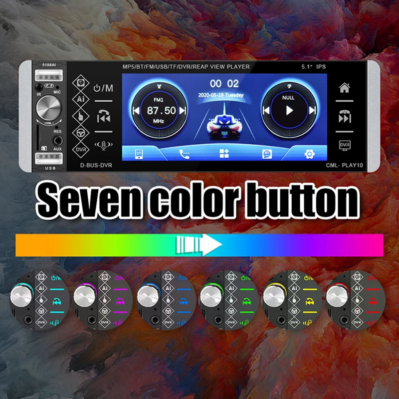 Автомобильный мультимедийный дисплей, 5,1 дюйма, Bluetooth, голосовое управление, MP5, полный тачскрин, U-диск, MP3-плеер, звонки в режиме громкой связи