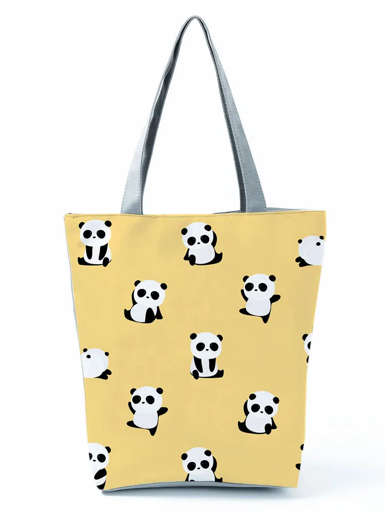 Сумка с рисунком панды, многоразовая женская сумка для покупок с желтым котом, сумка на плечо из полиэстера с индивидуальным рисунком