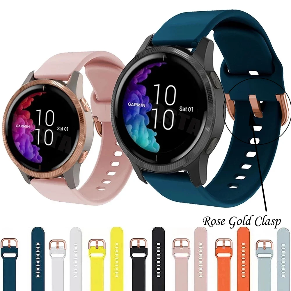 Розовое золото кнопки силиконовые Ремешки для наручных часов спортивный ремешок для Garmin Forerunner 245M/645/Vivoactive 3/Venu SQ браслет Correa