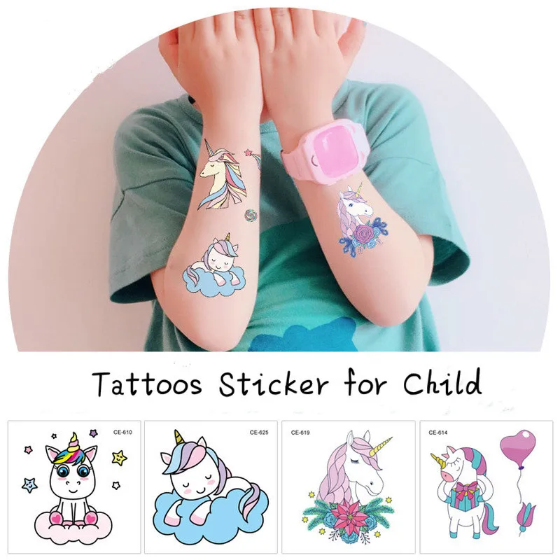 5 шт. Временные татуировки единорога стикер красочные поддельные татуировки флэш водонепроницаемый боди-арт Детский Дизайн мультфильмы 6*6 см