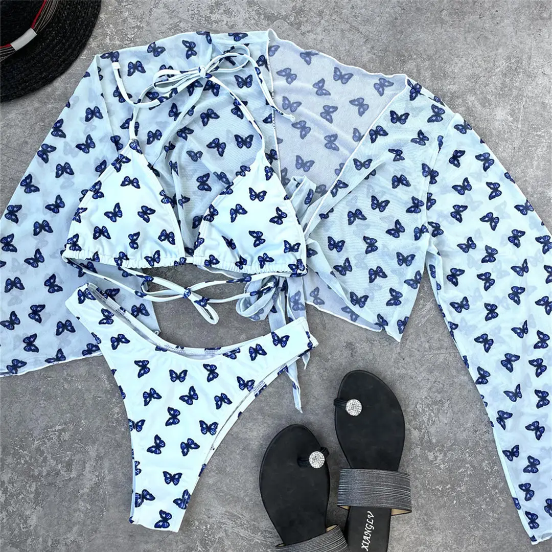 Новый женский купальник с принтом бабочек и узлами, комплект бикини...