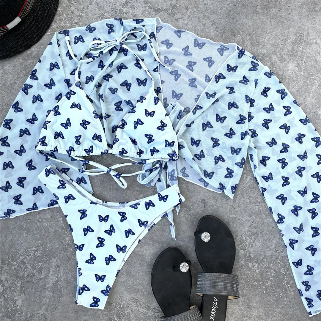 3 шт., сетчатый женский купальник бикини с длинным рукавом, женский...
