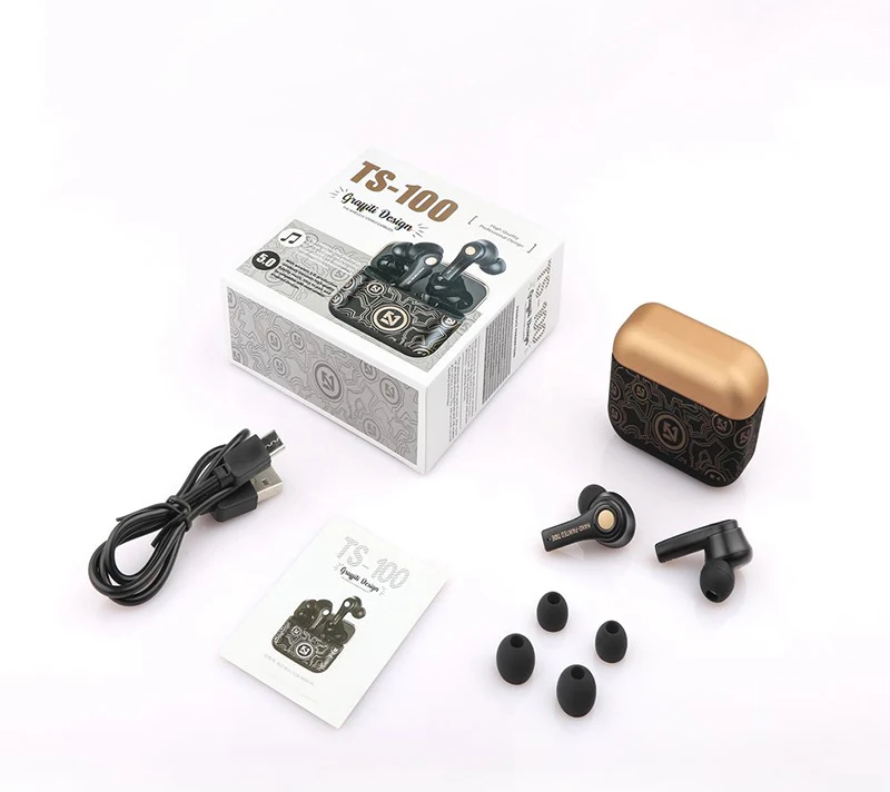 TS-100 TWS Беспроводные Bluetooth 5,0 наушники с микрофоном для зар...