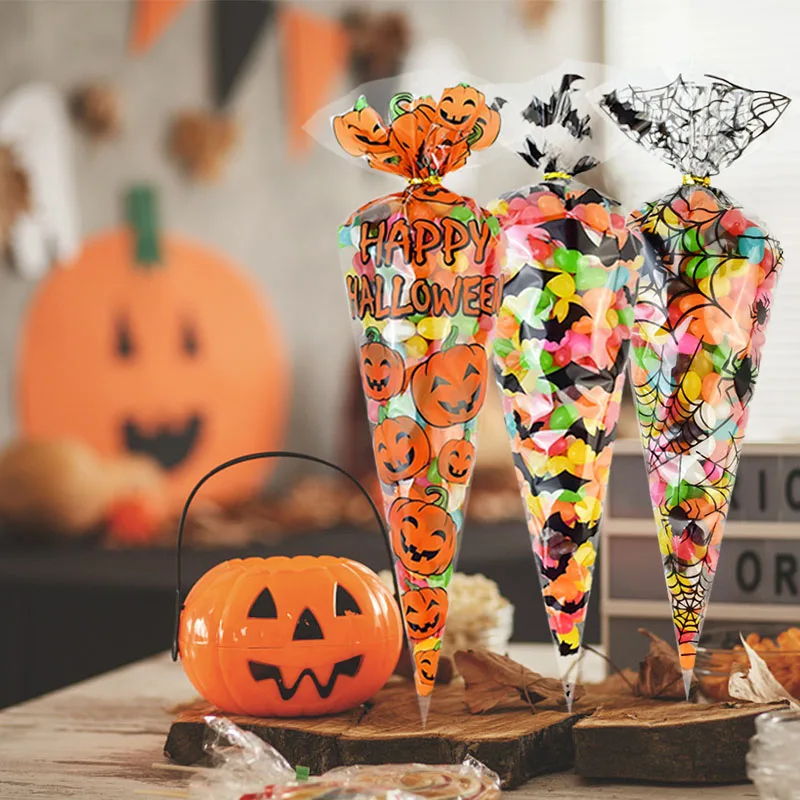 100 шт. Хэллоуин конфеты сумки целлофановая упаковка мешок Пластик подарочные пакеты вечерние свадебные сувениры сумка тыквы с принтом летучей мыши для Хэллоуина Вечерние
