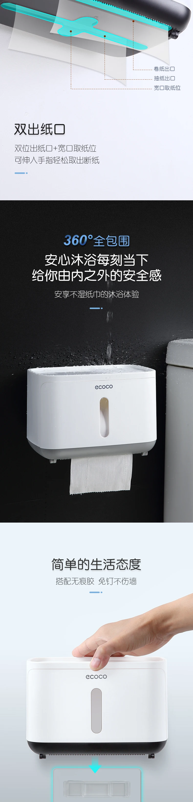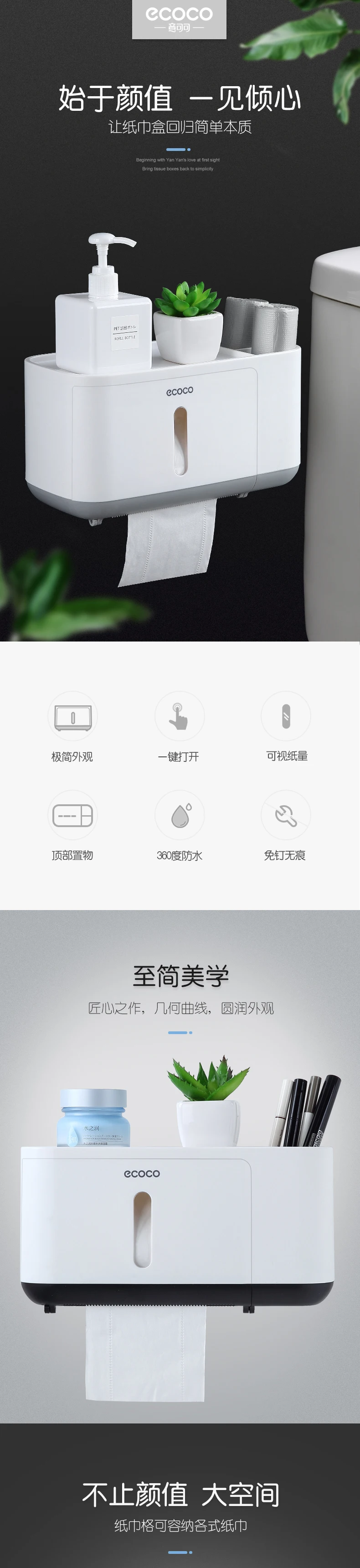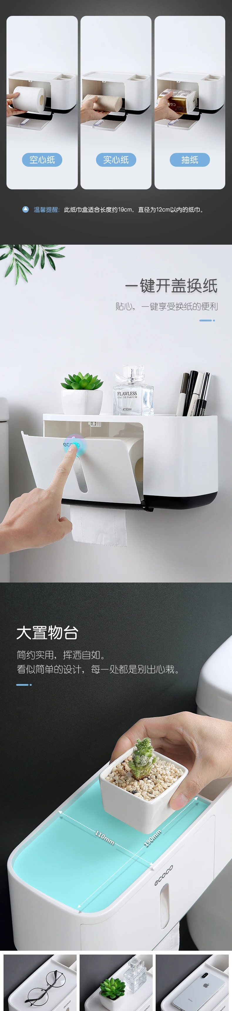 Водонепроницаемый держатель для туалетной бумаги ECOCO, настенный держатель для туалетной полки, поднос, рулон, органайзер, аксессуары для ванной комнаты