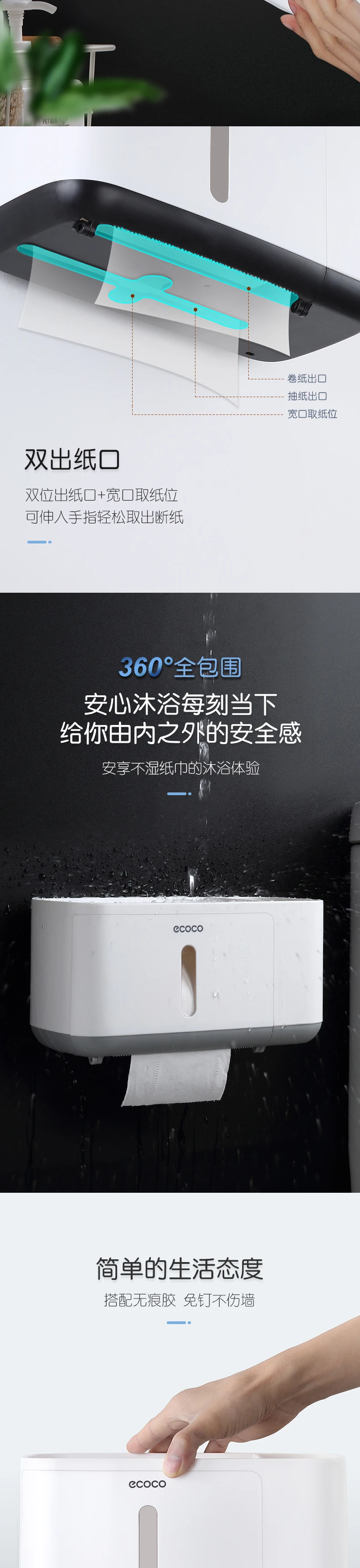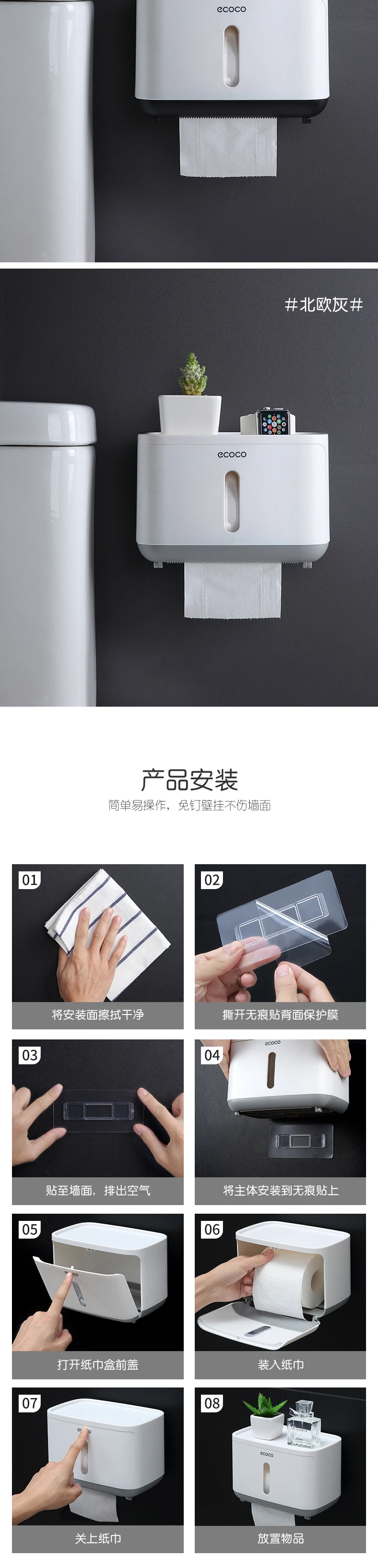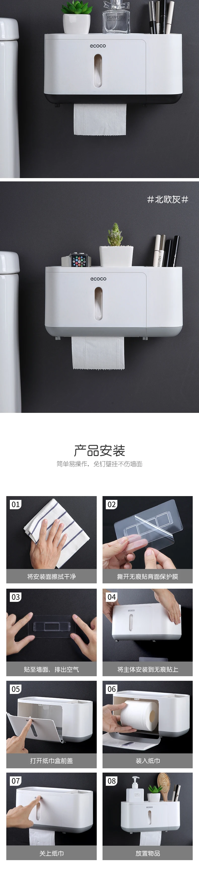 Водонепроницаемый держатель для туалетной бумаги ECOCO, настенный держатель для туалетной полки, поднос, рулон, органайзер, аксессуары для ванной комнаты