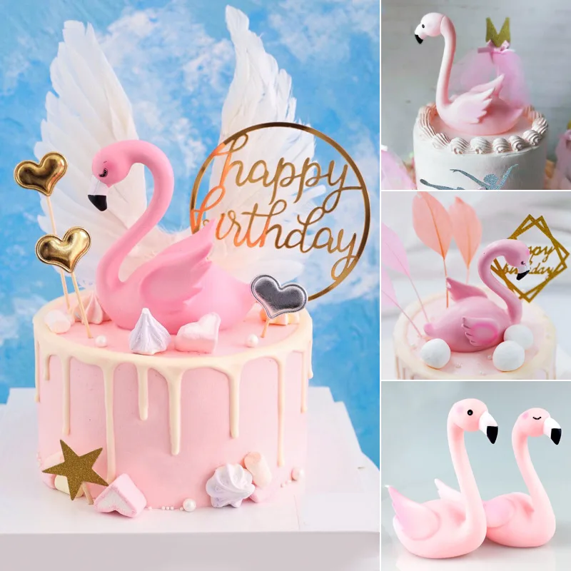 Тропический Розовый фламинго украшение для торта лето свадьба день рождения Гавайский пляж Лебединое крыло кекс Топпер С Днем Рождения Декор для вечеринки детский