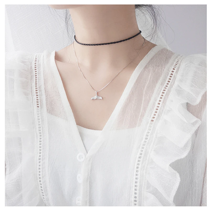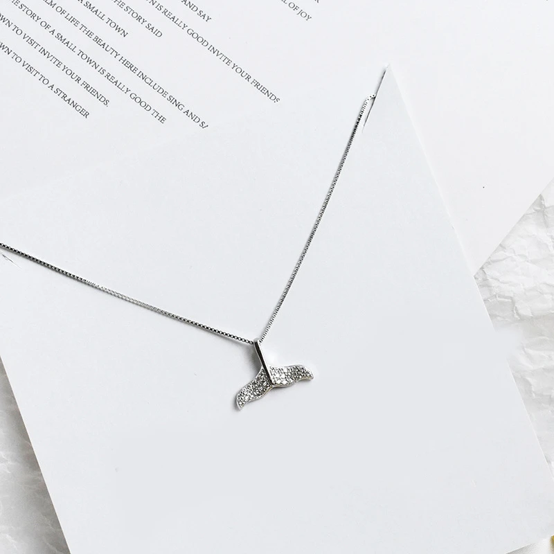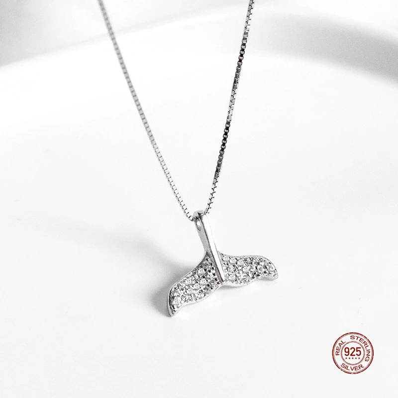 LKO настоящее серебро 925 пробы сладкий кристалл хвост кита очарование женское ожерелье простой хвост русалки ключицы кулон подарки на день рождения