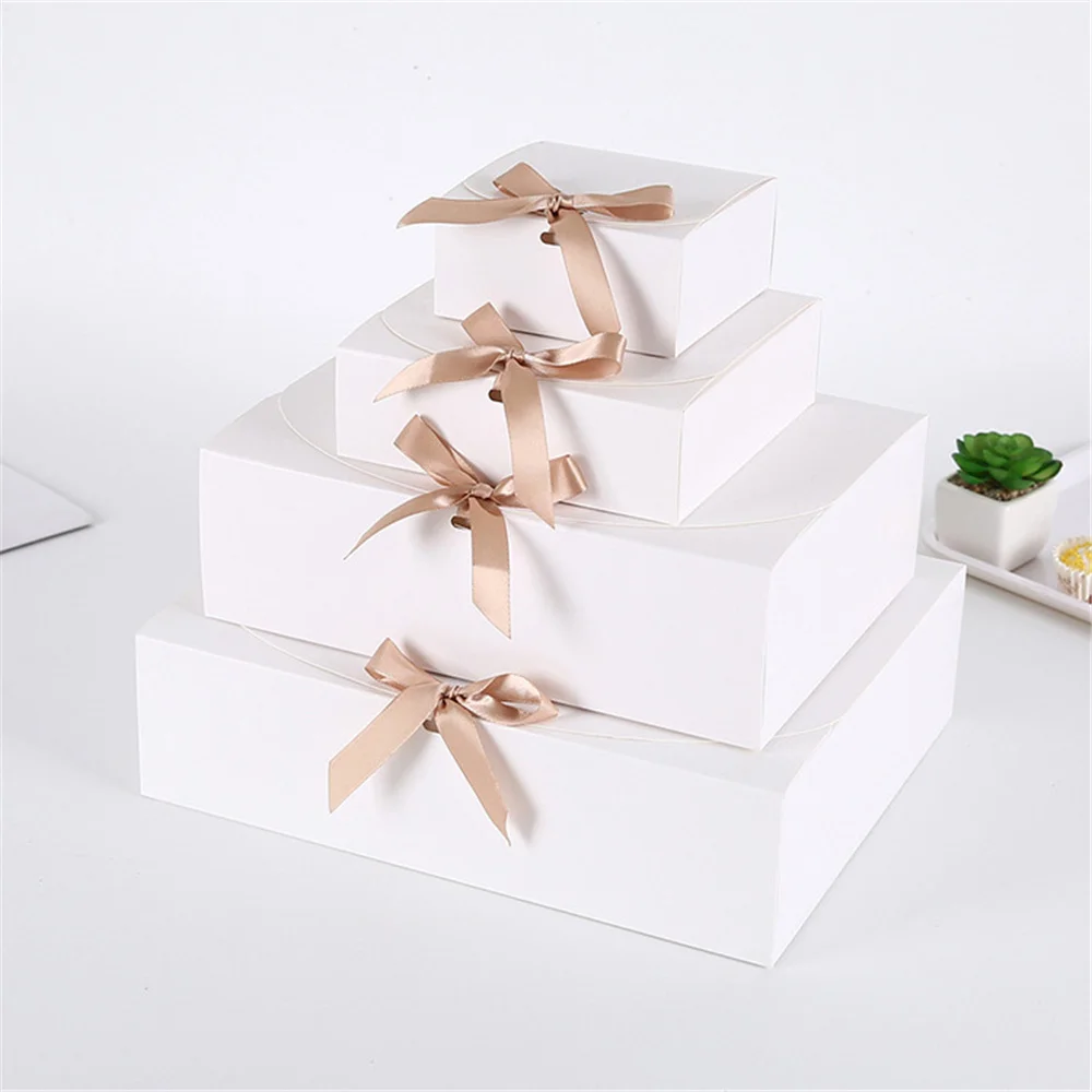 Подарочная коробка из крафтовой бумаги с бантом, белая коробка для ...