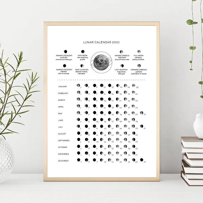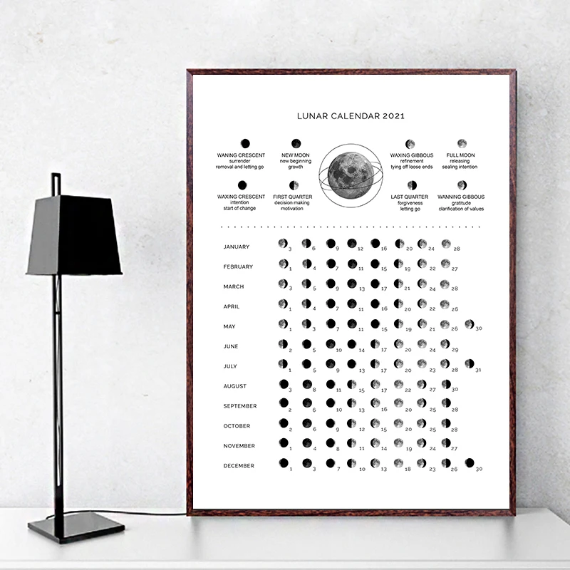 2021 г., фаза Луны, календарь, холст, картина, украшение комнаты, Андромеда, галактика, плакат и принт полумесяца, лунное настенное искусство, домашний декор