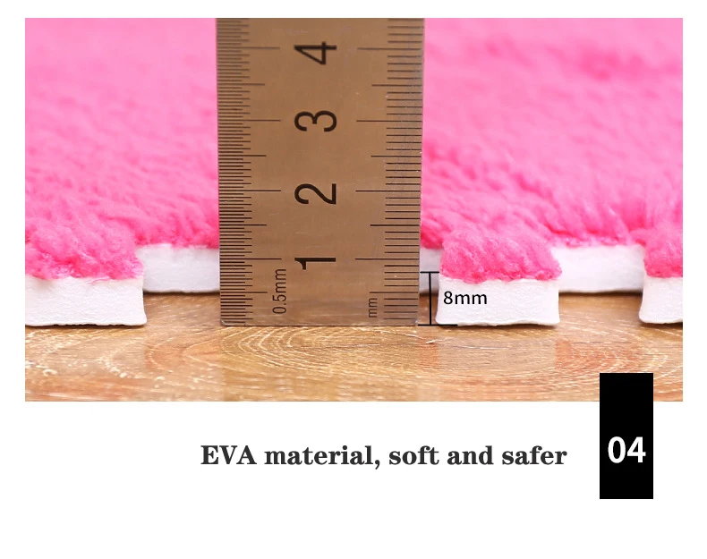 Размер одного чипа: 30*30*0,8 (см) Преимущества: 1. Звуконепроницаемый, ударопрочный, водонепроницаемый, сохраняющий тепло; 2. Укладка простая, плоская, поверхность специфическая сопротивление скольжению; Толщина 0,8 см; 3. Изделие без запаха, можно использовать без очистки и сушки; Специально для использования малыша; 4. Очень толстая Толщина изделия, чтобы ребенок не упал, сидя сверху во время игры, также можно разместить в помещении для занятий фитнесом, коврики для тренажерного зала, легко хранить. Использование продукта: ★Широко используется, его можно использовать как детскую игрушку, как украшение, и можно использовать без стирки и сушки; Особенно будьте уверены; Особенно нарядно. ★Не позволяйте малышу упасть, когда сидите на макушке во время игры. Вы также можете использовать его в помещении для занятий фитнес гимнастикой, что удобно для хранения. ★Разложить на земле не чувствуется прохлада на земле, можно сделать ковер, можно временно спать постель.