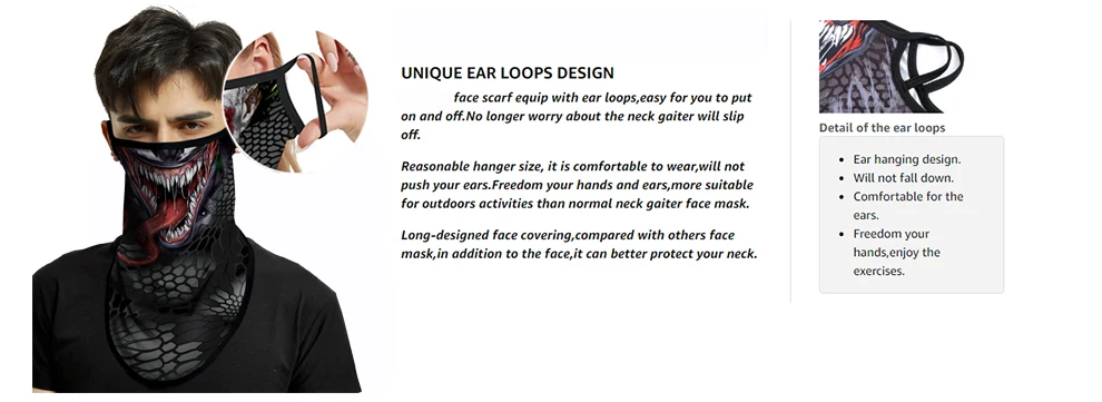 1.Универсальная маска для лица с ушной петлей подходит для всех сезонов активного отдыха, например:Катание на лыжах, велосипеде, треккинг, кемпинг, туризм, йога, рыбалка, охота, езда, мотоциклистов, тактическая тренировка, защита от ультрафиолета, предельная защита для активного отдыха.