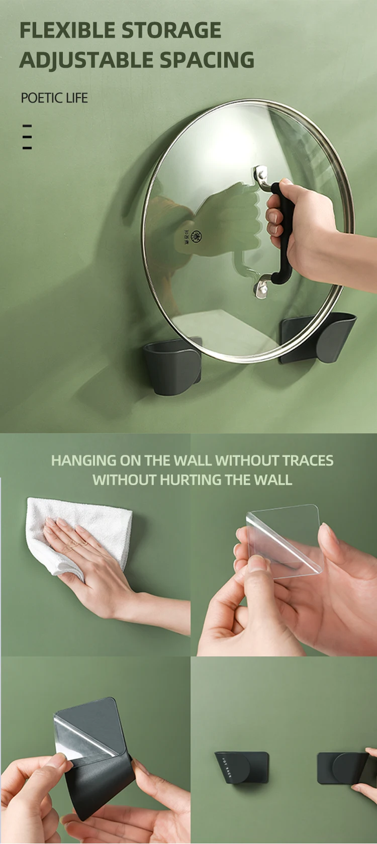 Самоклеящийся держатель крышки кастрюли без отверстий настенная Кры...