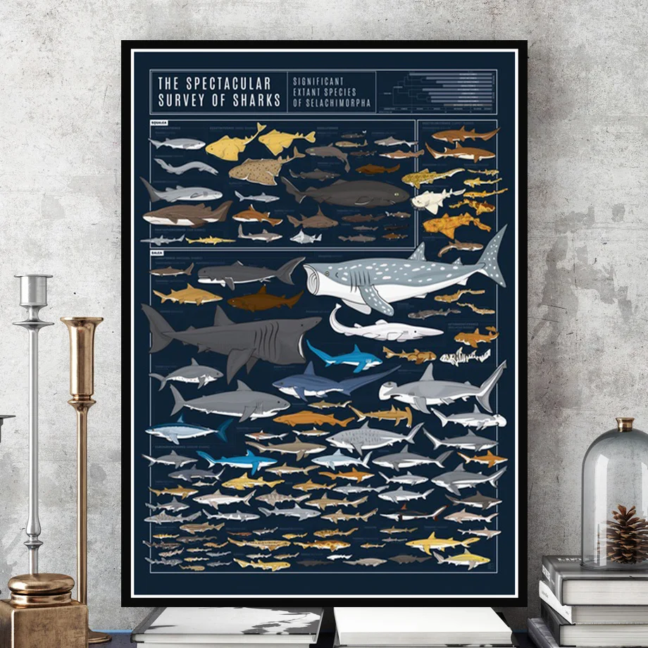 Новый постер с изображением акул, животных, картина маслом Художественная печать на холсте, настенные картины для гостиной, домашний декор