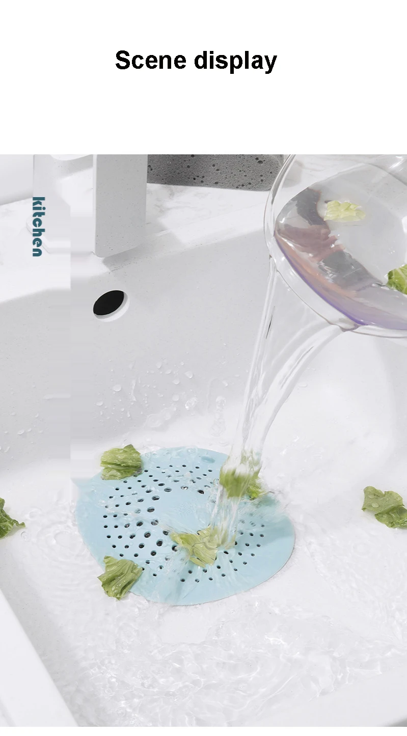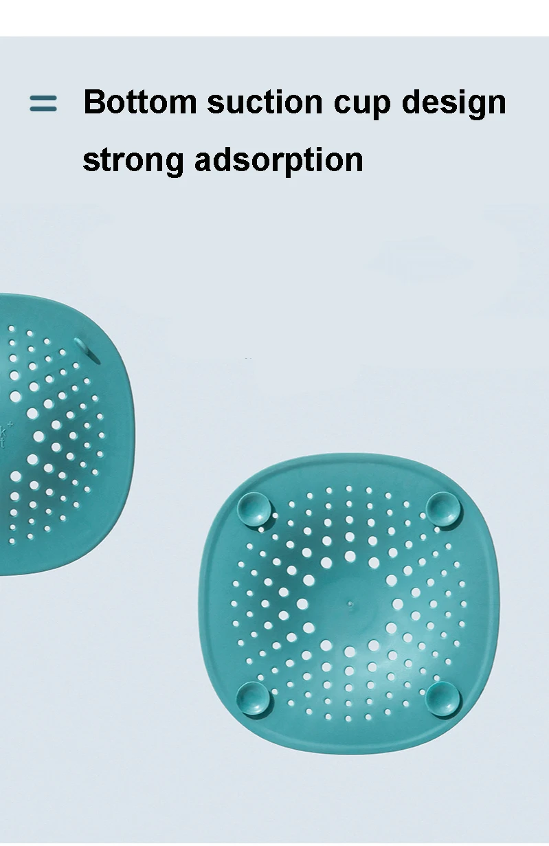 filtro para evitar caídas de pelos o cualquier residuo, en el fregadero, bañera, etc. la goma es dura y moldeable. tiene ventosas con fuerte agarre. es tal cual sale en las fotos.