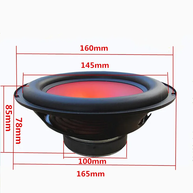 Автомобильный аудиодинамик, басовый сабвуфер, толстое резиновое кольцо, Круглый красный V-образный сабвуфер, 4 Ом, для модифицированного автомобильного динамика, коробка, 6,5 дюйма
