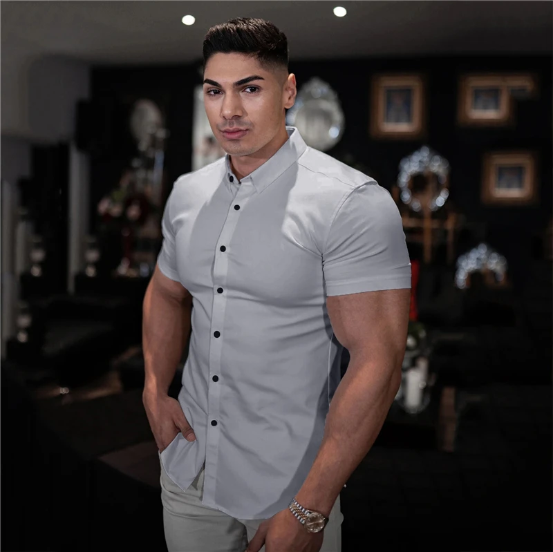 Рубашка мужская с коротким рукавом, Спортивная уличная одежда, хипстерская одежда, на пуговицах, одежда для спортзала и фитнеса, модная одежда