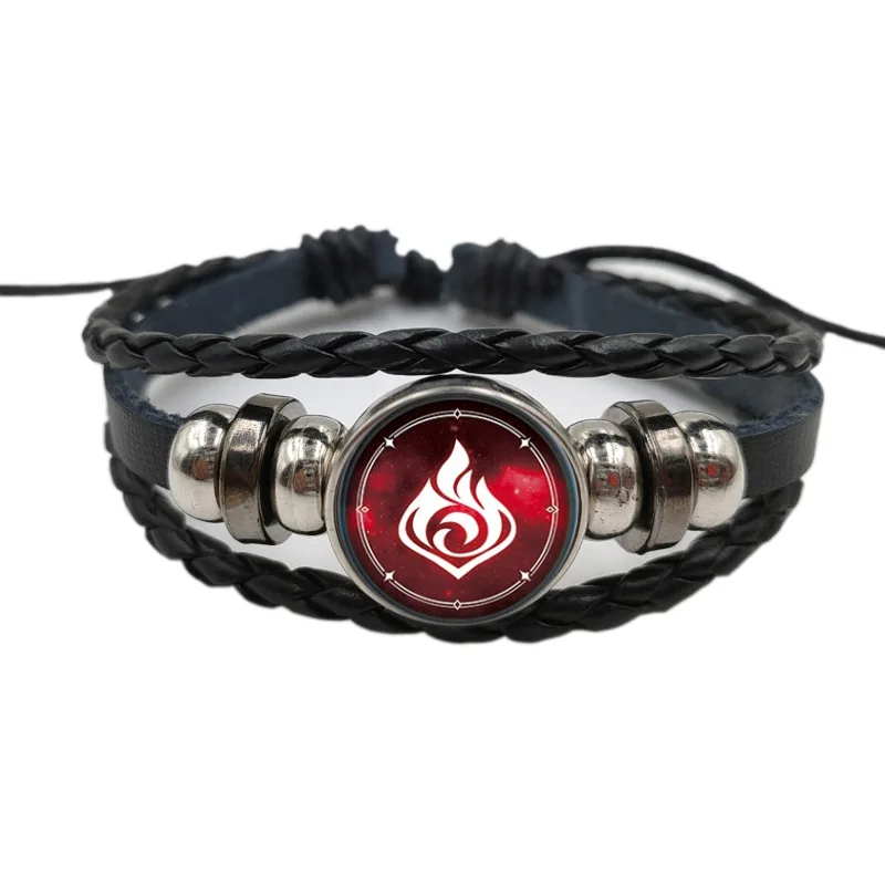Браслет Genshin Impact кожаный с имитацией глаза Божия, воды, ветра...