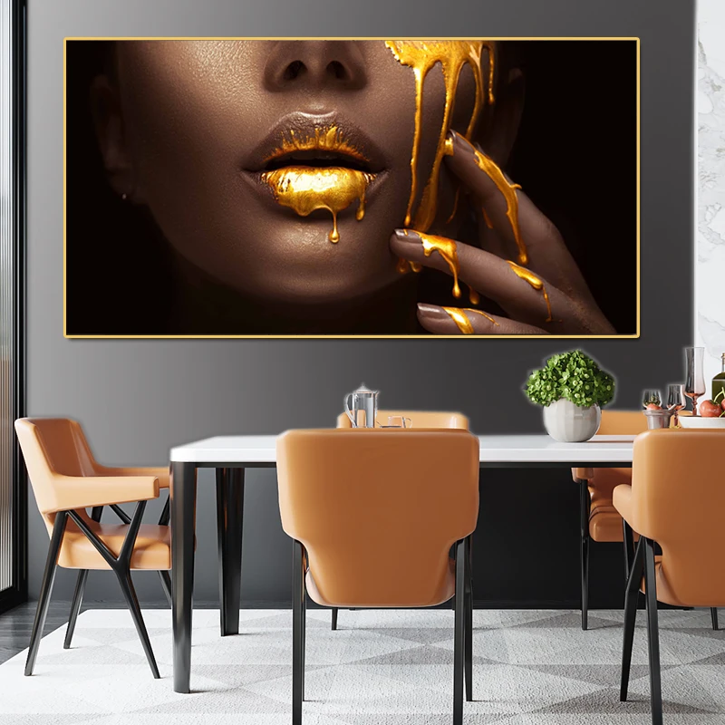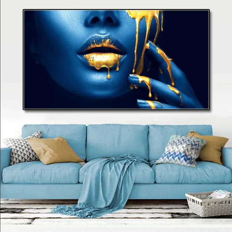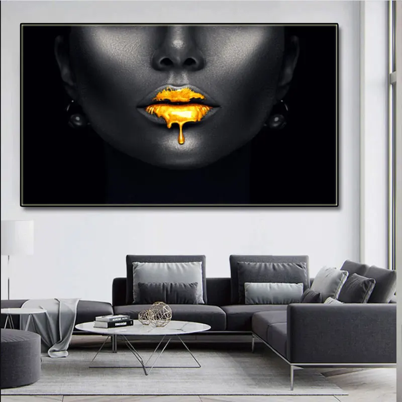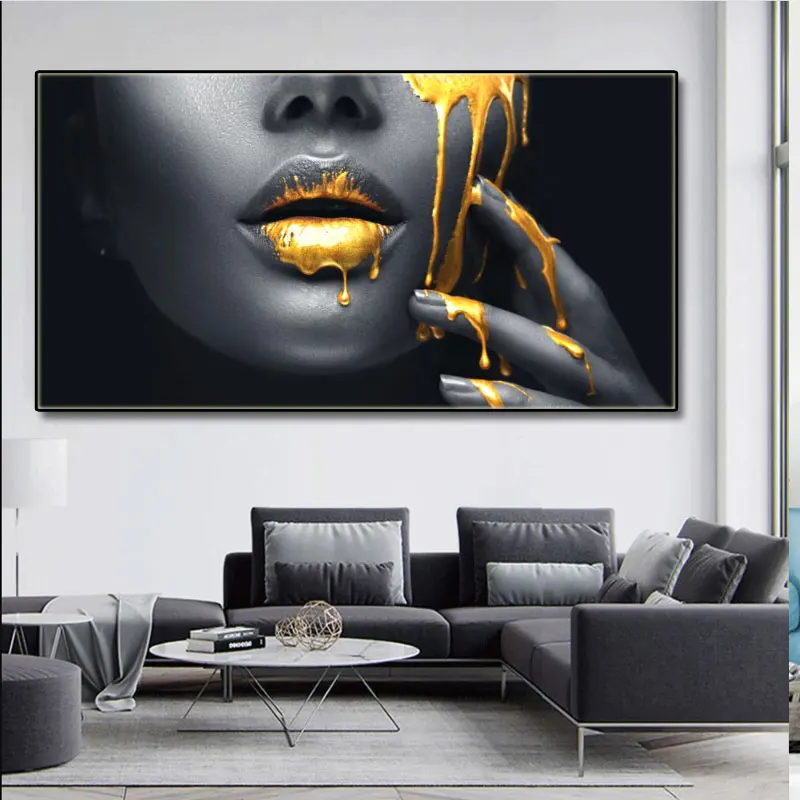 Картины на холсте с изображением золотых сексуальных губ, картины в...