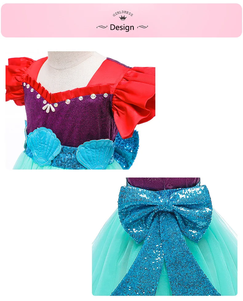 Платье для девочек с маленькой русалочкой Ариэль, нарядный костюм для Хэллоуина, детское платье Русалочки, одежда для карнавала, дня рождения