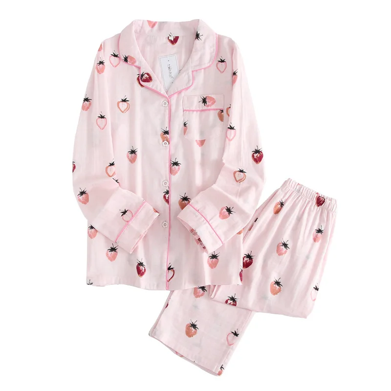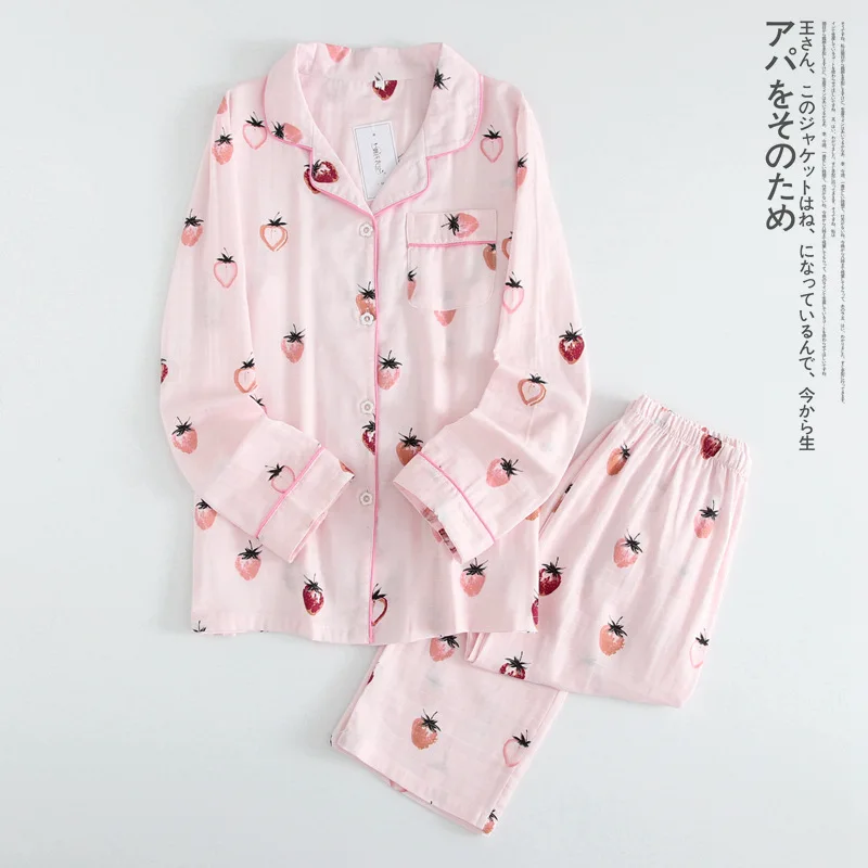 Пижама женская хлопковая, с длинным рукавом, в японском стиле, на весну и осень