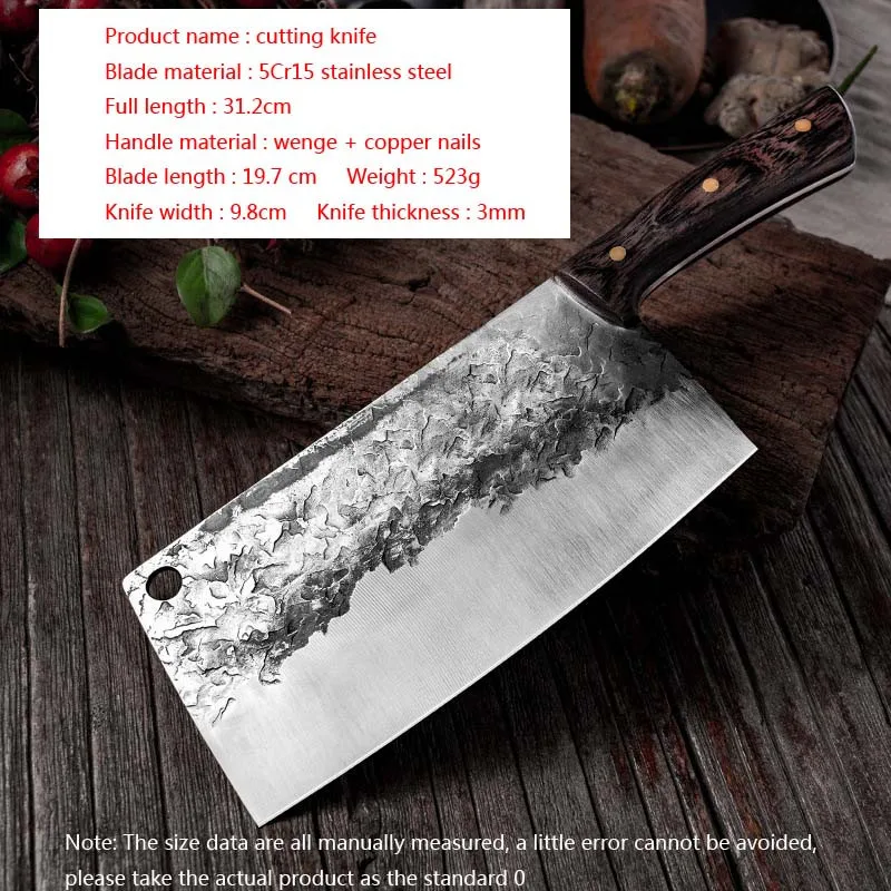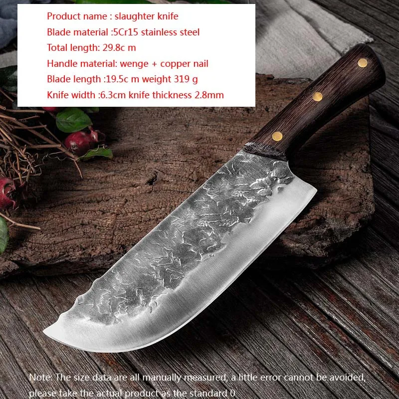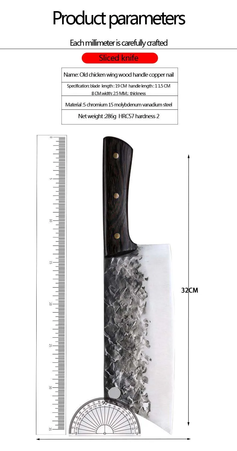 Материал лезвия: нержавеющая сталь 5Cr15mov Материал ручки: куриное крыло дерево + Медный гвоздь Натуральное куриное крыло дерево Натуральная деревянная ручка куриного крыла славится своей уникальной текстурой и излечивается высокотемпературным уплотнительным воском для улучшения цвета и долговечности. Дизайн волнистой ручки В соответствии с искусственным дизайном волнистая ручка используется для увеличения противоскользящего и комфортного ощущения. Медные заклепки Luban Craft. Прочный, прочный и антикоррозийный. Слой процесса чернения Процесс обработки почернения делает поверхность лезвия формой оксидного слоя для достижения эффекта анти-ржавчины. Выкованный молоток После высокотемпературной ковки, плотность и чистота стали улучшаются, так что твердость и твердость стали значительно улучшаются. Ручное фрезерование воды Лезвие сглажено вручную, лезвие гладкое, резкое, стойкое к порезу и легко измельчается.