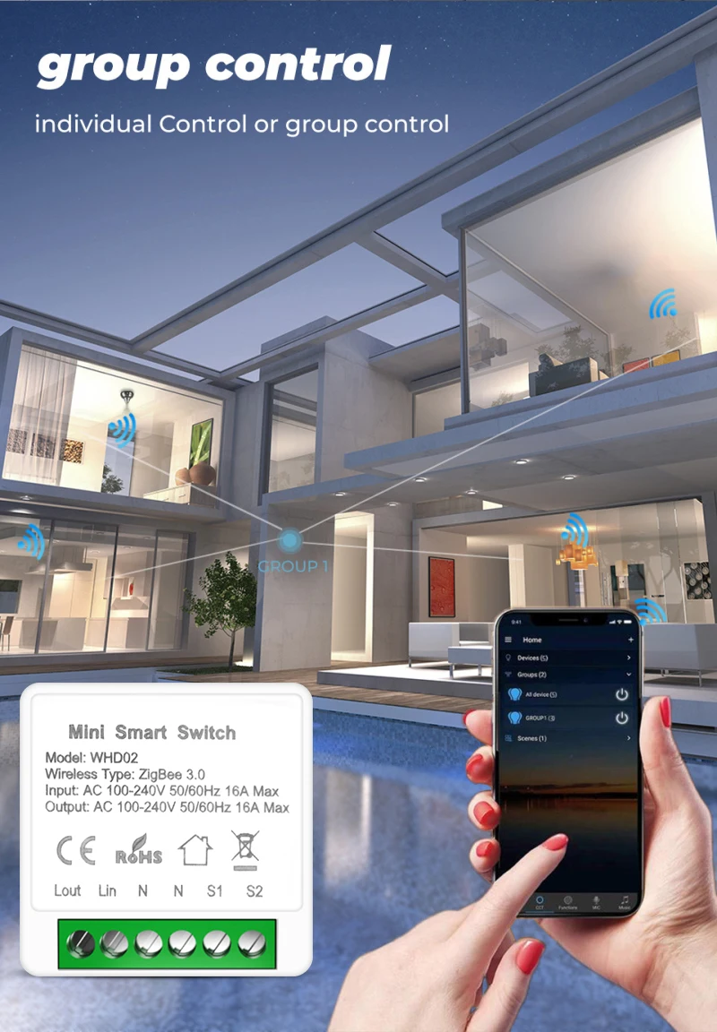 Умный мини-выключатель Zigbee 3,0, 16 А, с приложением