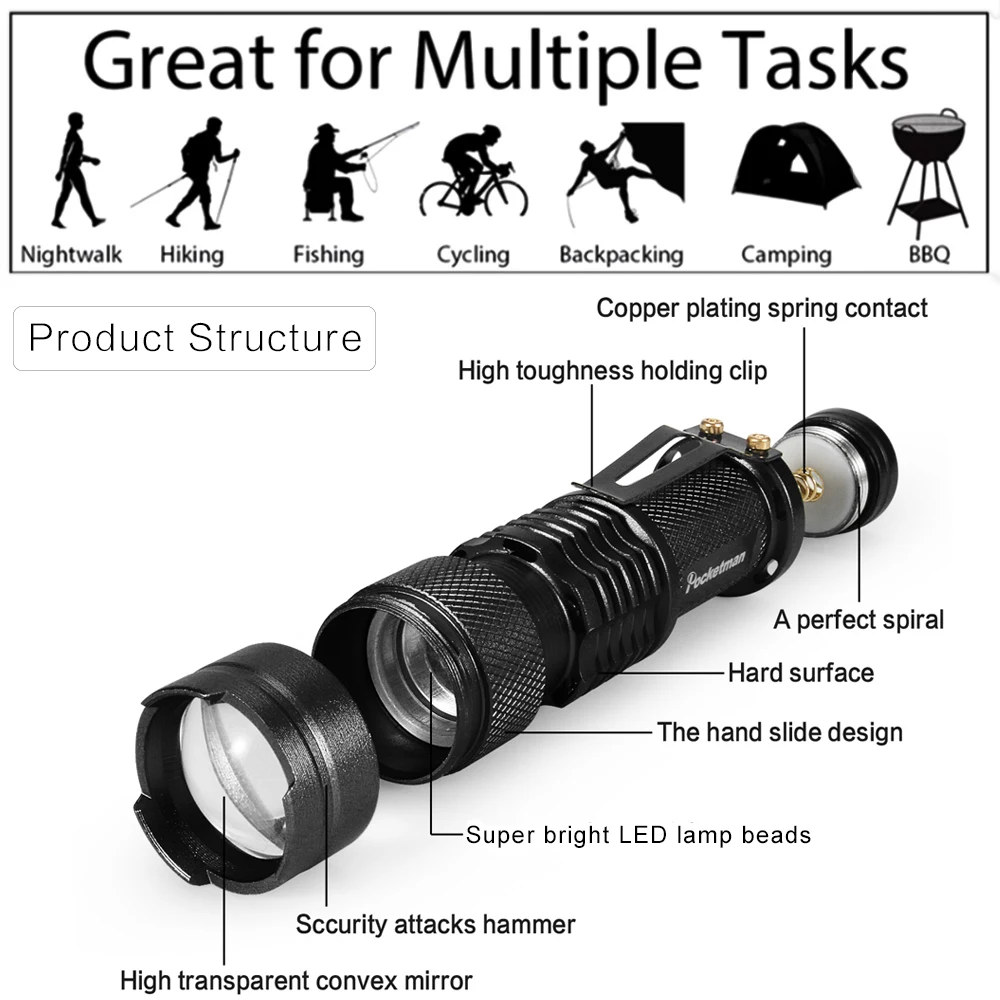 Портативный светодиодный фонарик Q5T6L2, масштабируфонарь фонарик, фонарик для кемпинга с батареей 1865014500