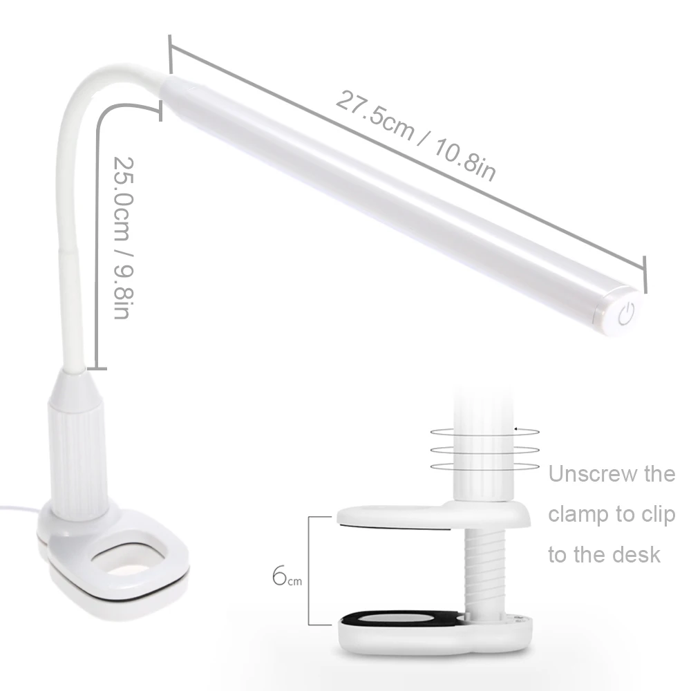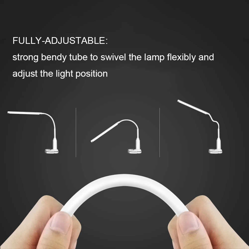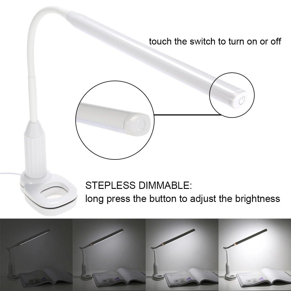 Эта настольная лампа для защиты глаз плавная регулировка яркости, питание от USB, защита глаз и полная регулировка. С помощью основания для зажима вы можете поместить его прямо там, где вам нужно. Комфортный белый светильник с рассеивателем с гладкой подсветкой будет держать глаза напряженными. Его можно использовать в компьютерном столе, офисном столе, велосипедной головке и т. д.