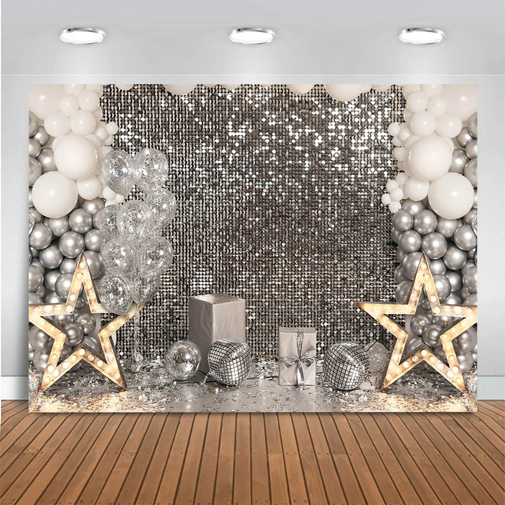 Праздничный Декор серебряные блестящие точки фон боке воздушные шары звезды реквизит свадебная фотография для взрослых день рождения фон для фотостудии