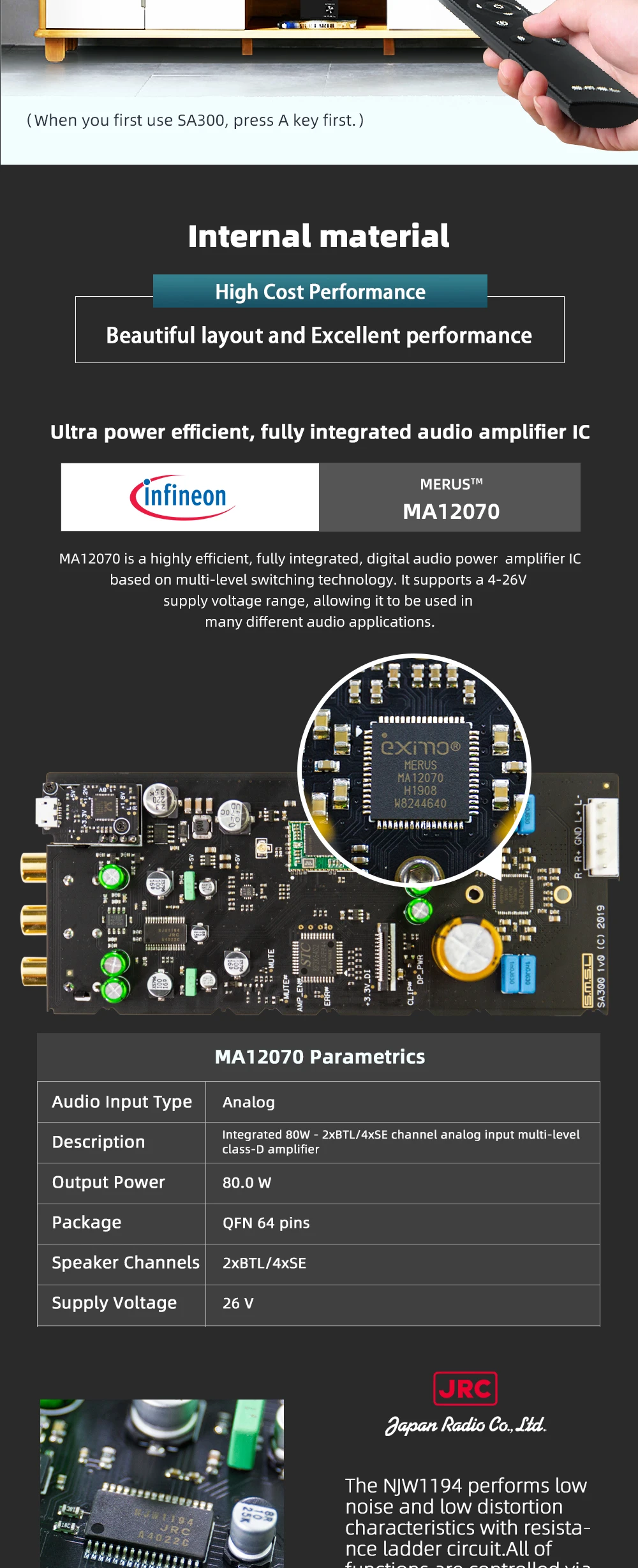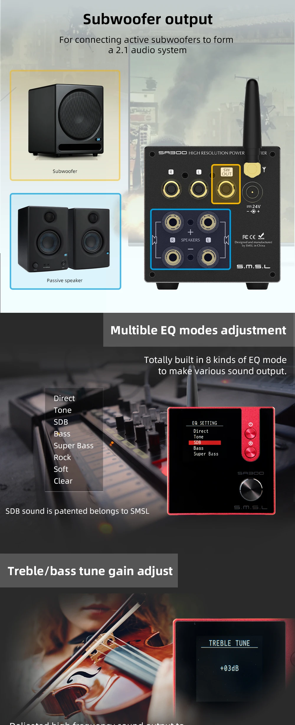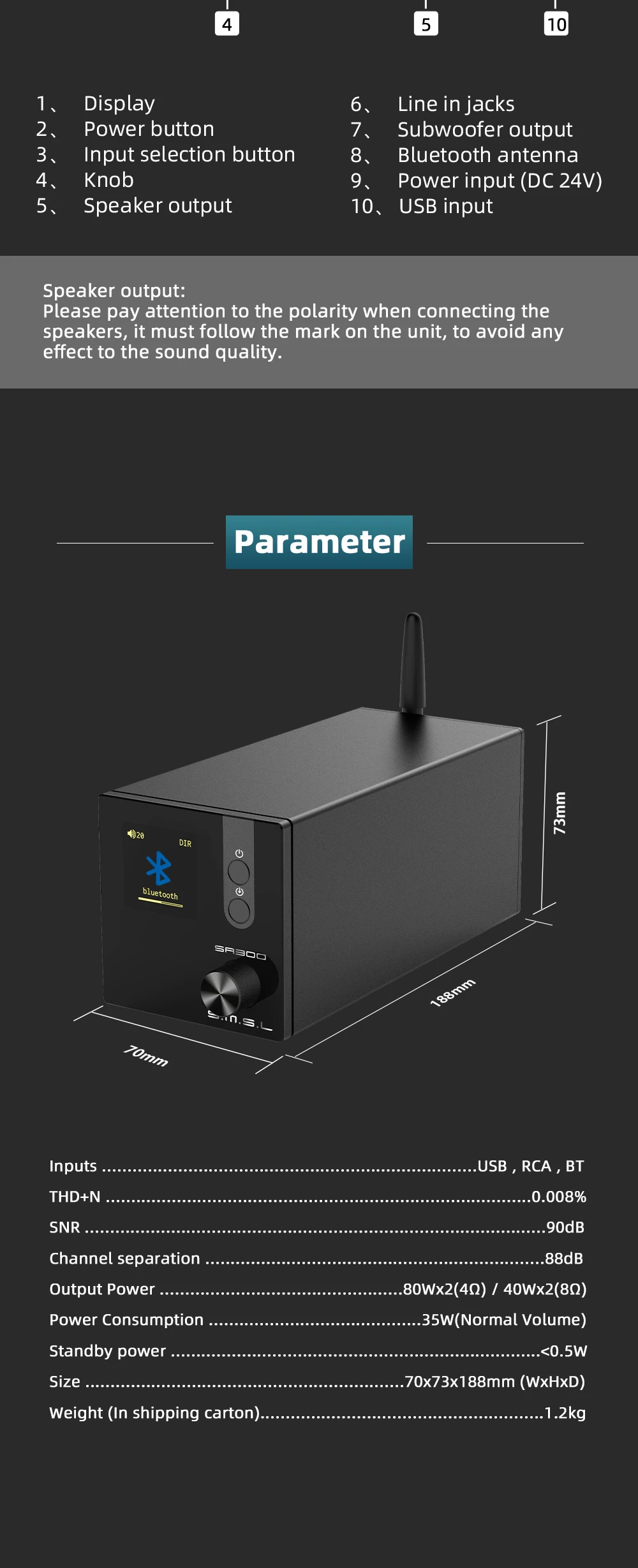 Усилитель мощности SLSM SA300, Bluetooth 5,0, Звук Hi-Fi, 80 Вт
