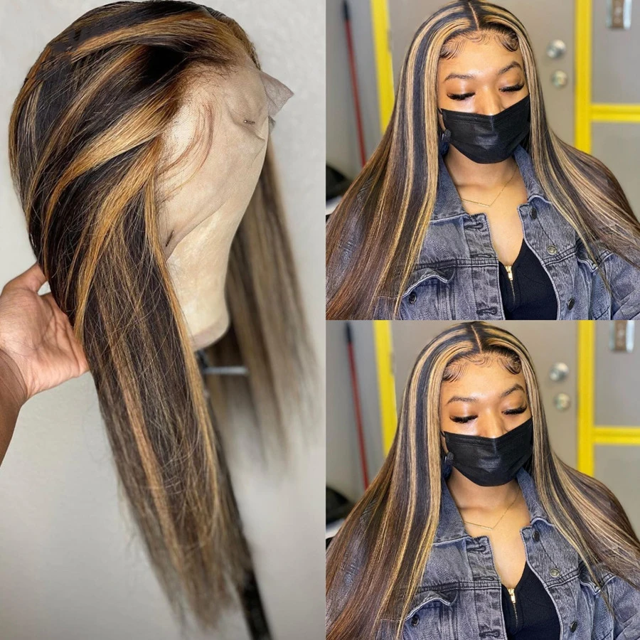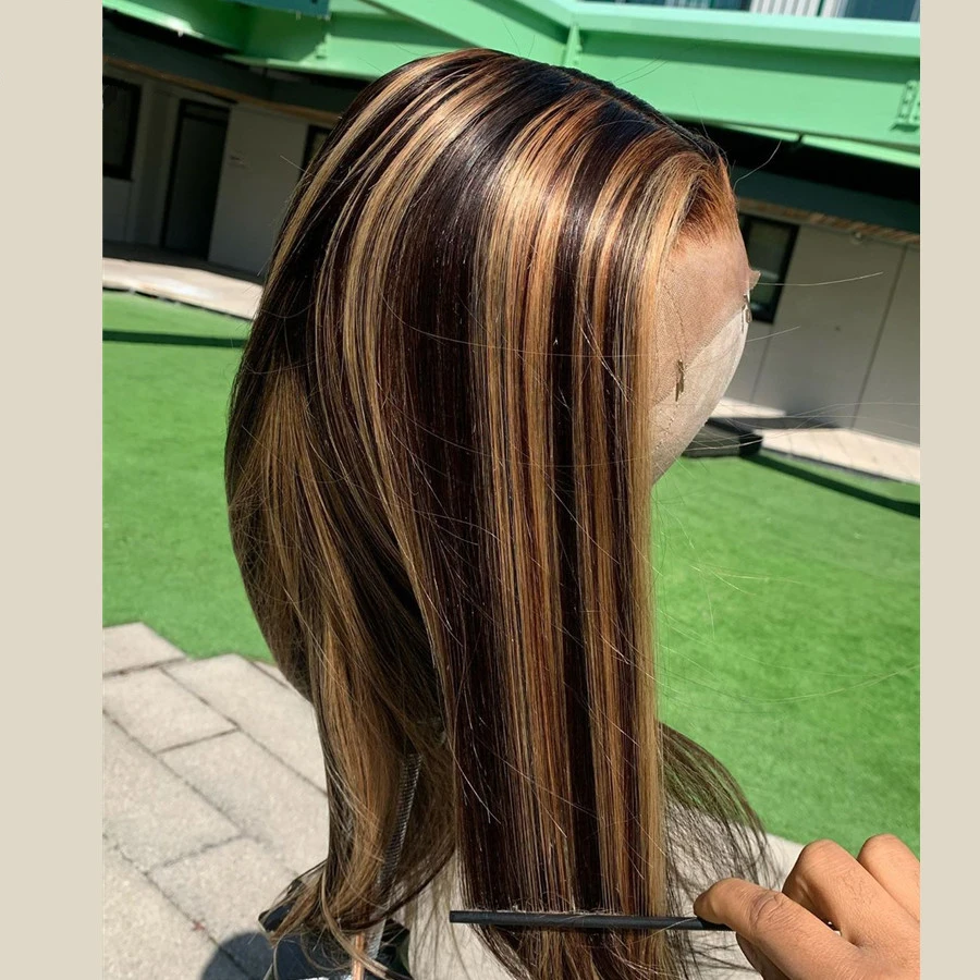 Парик из натуральных волос на сетке спереди, парики без повреждений, предварительно выщипанные, с эффектом омбре, блонд, прямой парик на сетке спереди, парики на сетке 180% T