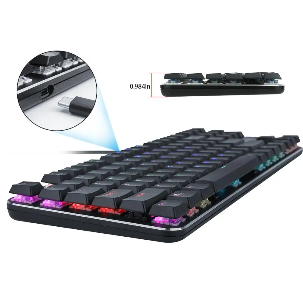 Z-66 Низкопрофильная Механическая игровая клавиатура, ультра тонкая, линейный красный переключатель со светодиодной подсветкой, алюминиевая панель 87 клавиш компактная (US-Layout) клавиатура для PC Gamer Typist