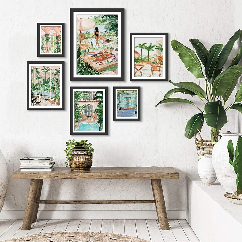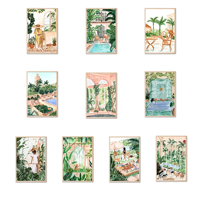 Картина на холсте с изображением пляжа, бассейна, марокканских тропических джунглей, качелей, луга, настенный художественный плакат и печатные картины, декор для гостиной