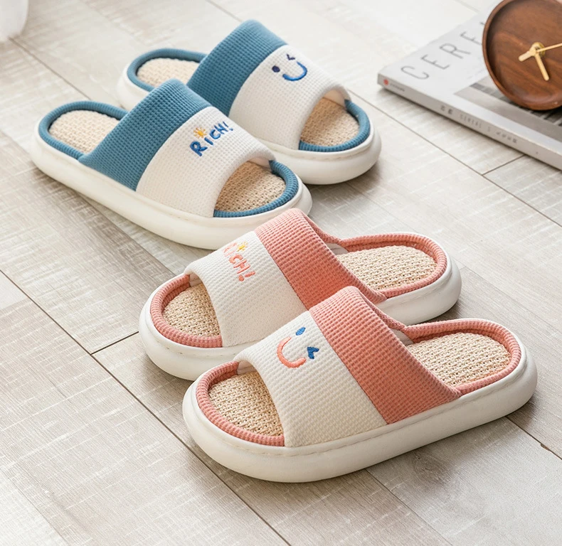 Тапочки из хлопчатобумажной ткани; Женские домашние тапочки из материала на основе на открытом воздухе тапки-шлепанцы; Мягкая обувь на толстой подошве с рисунком героев из мультфильма; Для влюбленных; Домашние мягкие тапочки; Удобная обувь