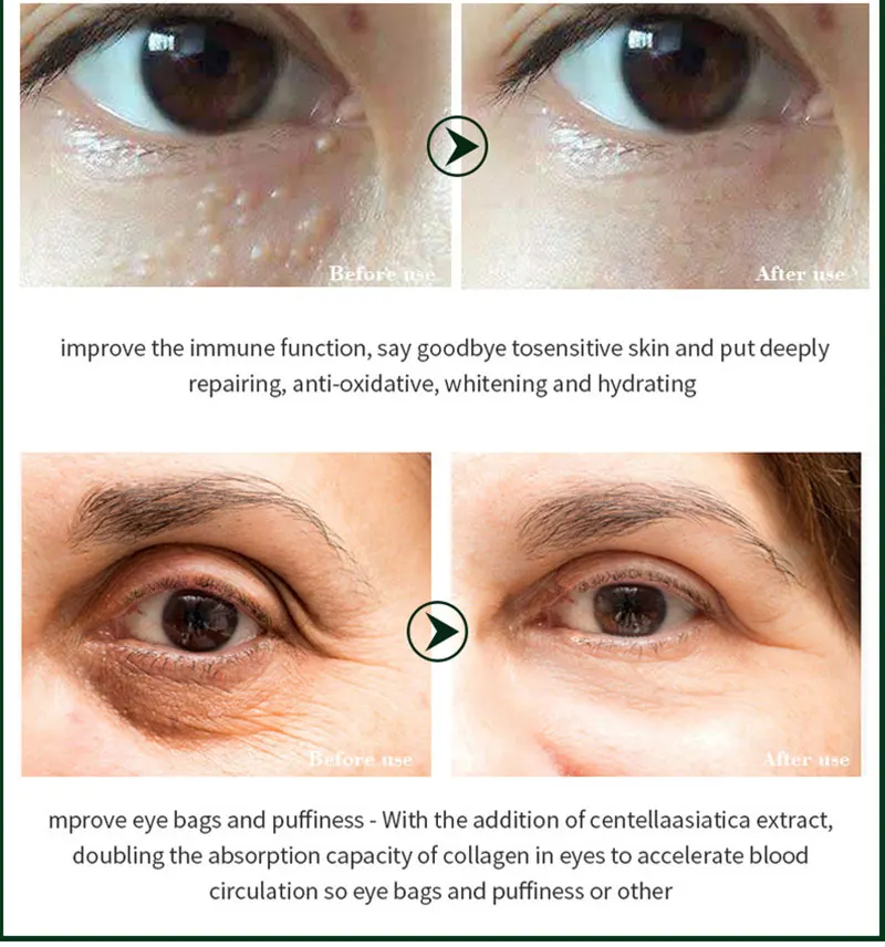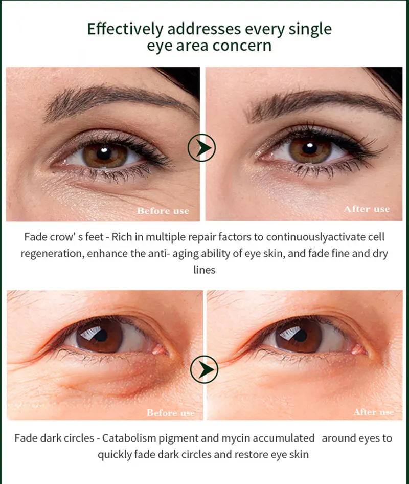 Спецификация: 20 млРазмер изделия: 12,1*3 ммФункция: осветляет темные круги и морщины глаз, удаляет свободные радикалы вокруг глаз и улучшает мешки для глазСостав: улитка и коллагенИспользование: глазаПодходит для кожи: вся кожа.