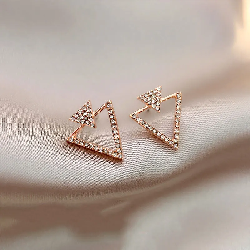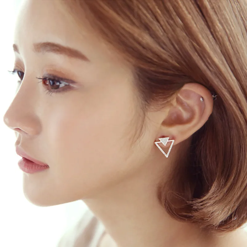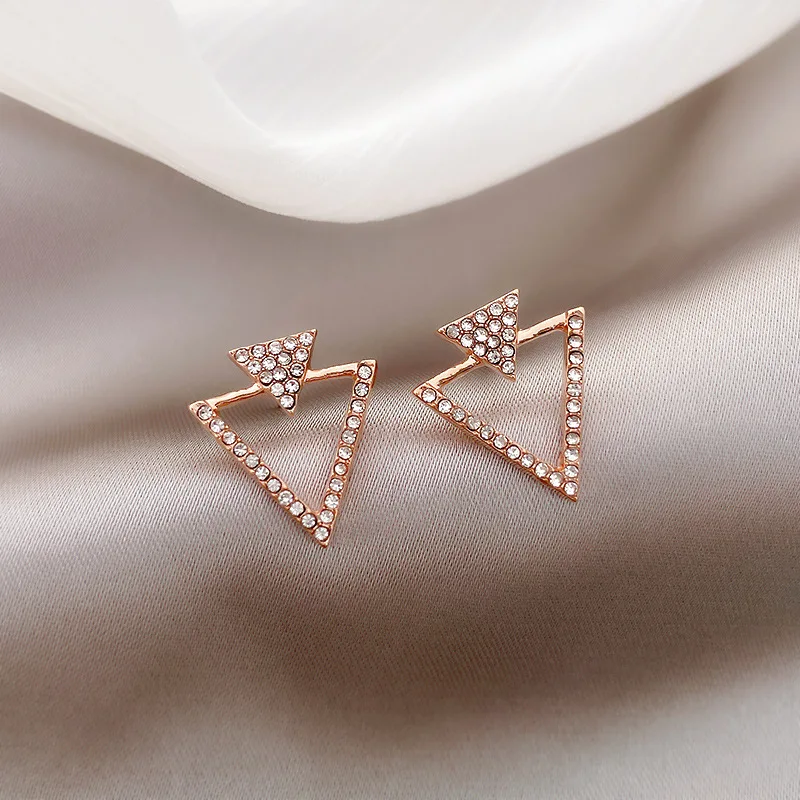 Посеребренные блестящие циркониевые геометрические полые треугольные серьги-гвоздики для девочек индивидуальные серьги для вечеринок хип-хоп ювелирные изделия подарок