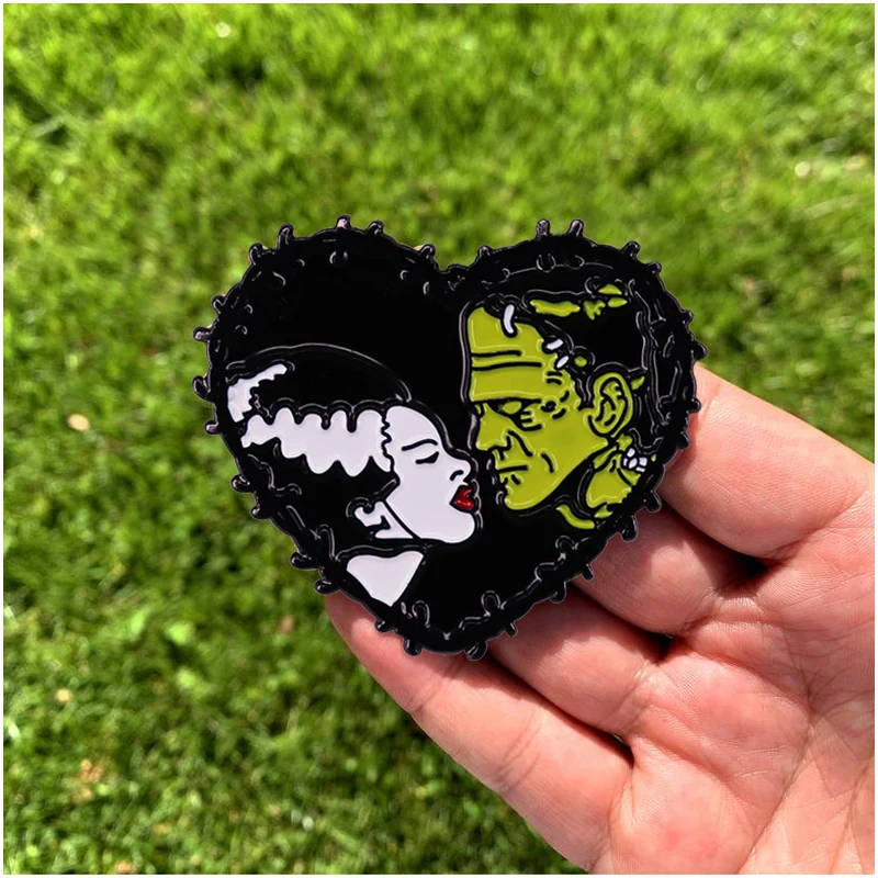 Брошь с изображением Франкенштейна и его невесты, украденной в виде сшитого сердца, Классическая Брошь из фильма 1935 "мы мертвы"