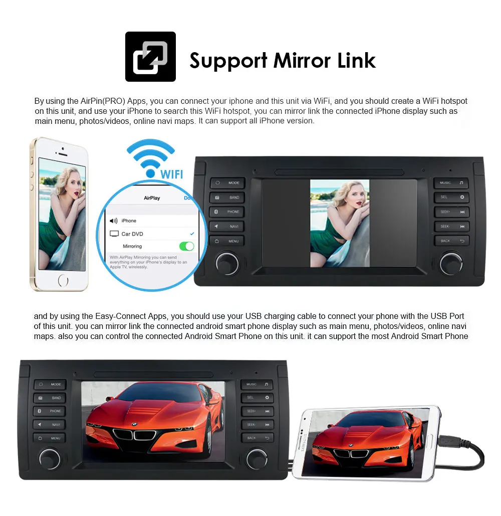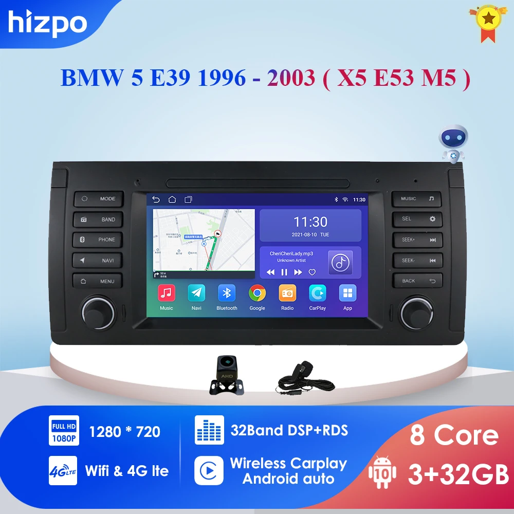 Автомагнитола Carplay 4GWIFI Plus для BMW 5 серии E39 X5 E53 M5, му...