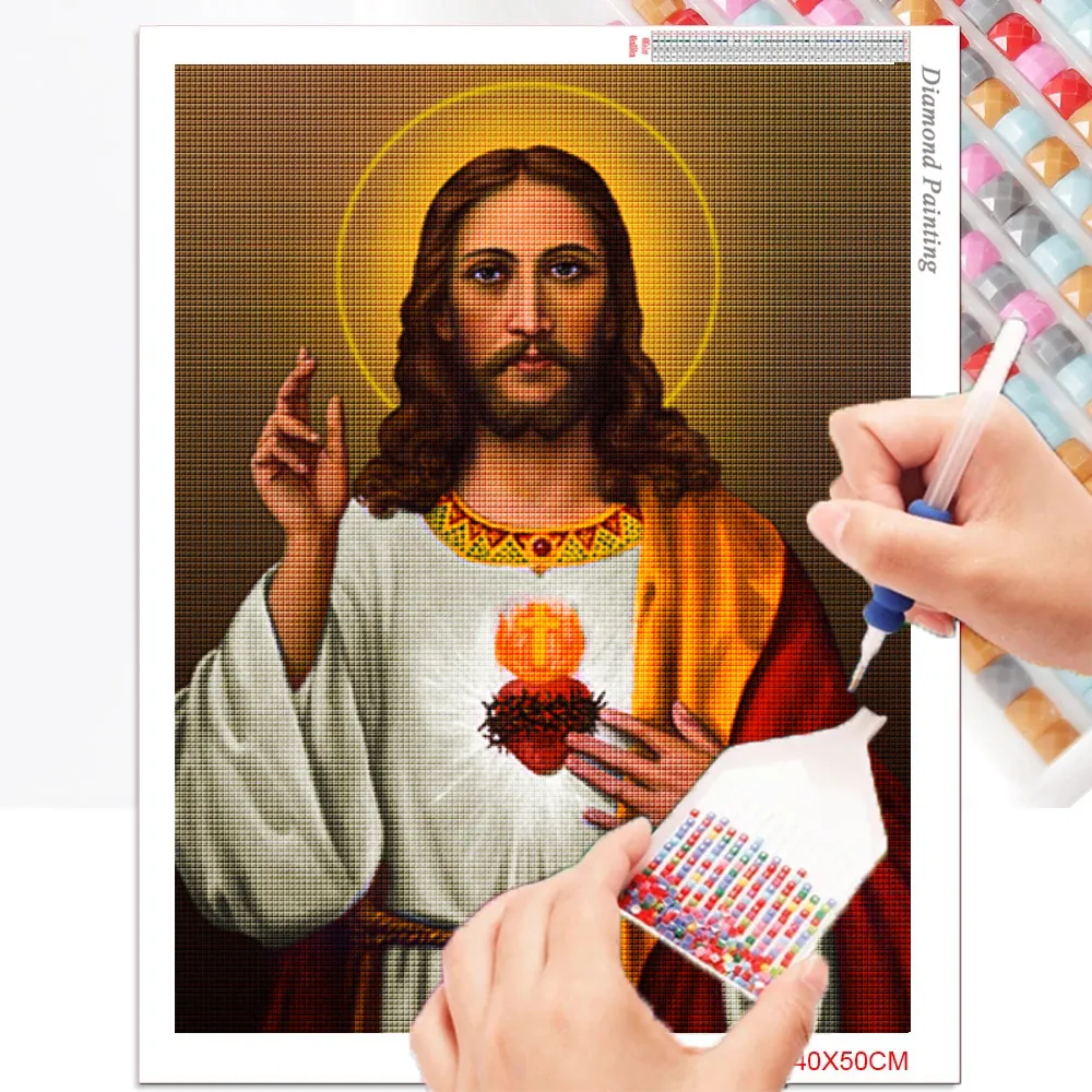 Алмазная 5D картина сделай сам с полным заполнением, мозаика из страз религиозное Священное Сердце Иисуса, вышивка крестиком, домашний декор