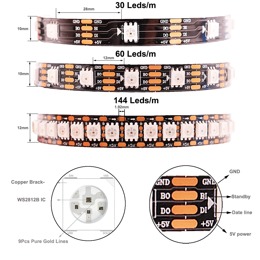 Пиксели: 30 светодиодов/60 светодиодов/144 светодиодов/метр