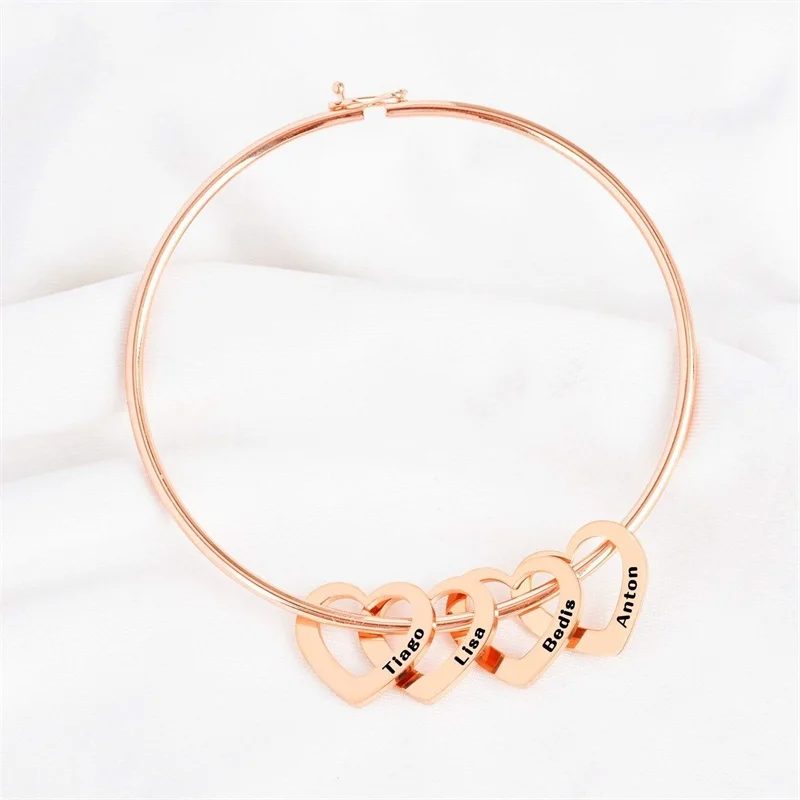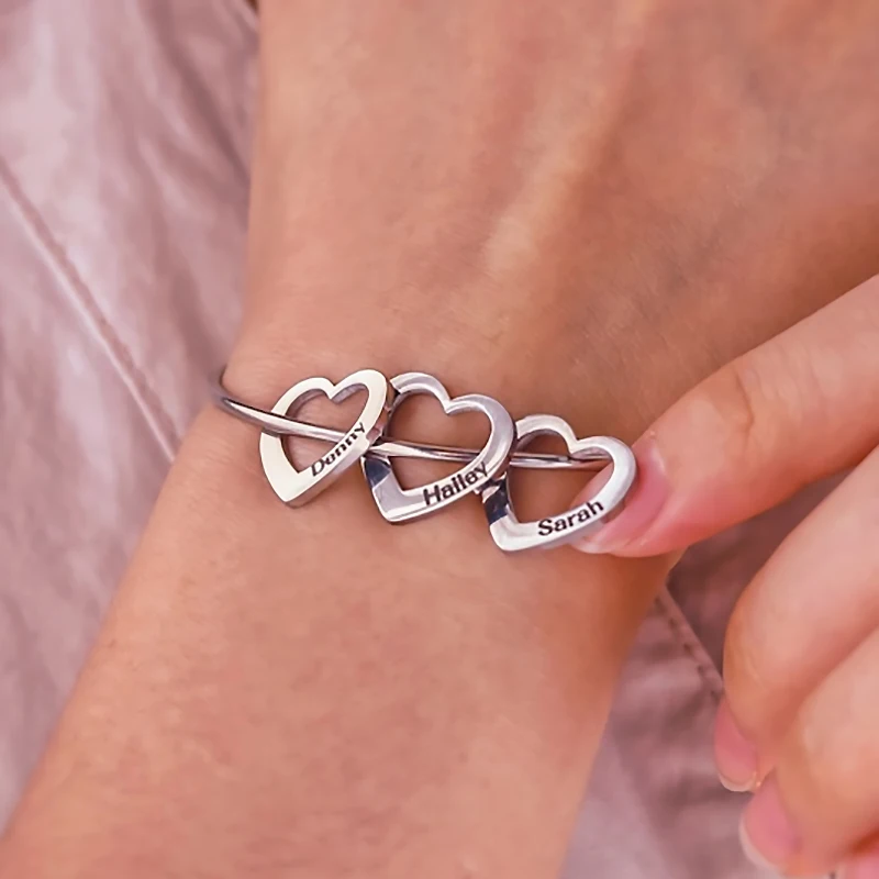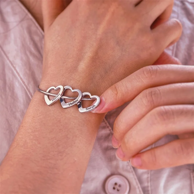 Браслет на заказ, цепочка из нержавеющей стали, 1-5 имена, сердце, ...
