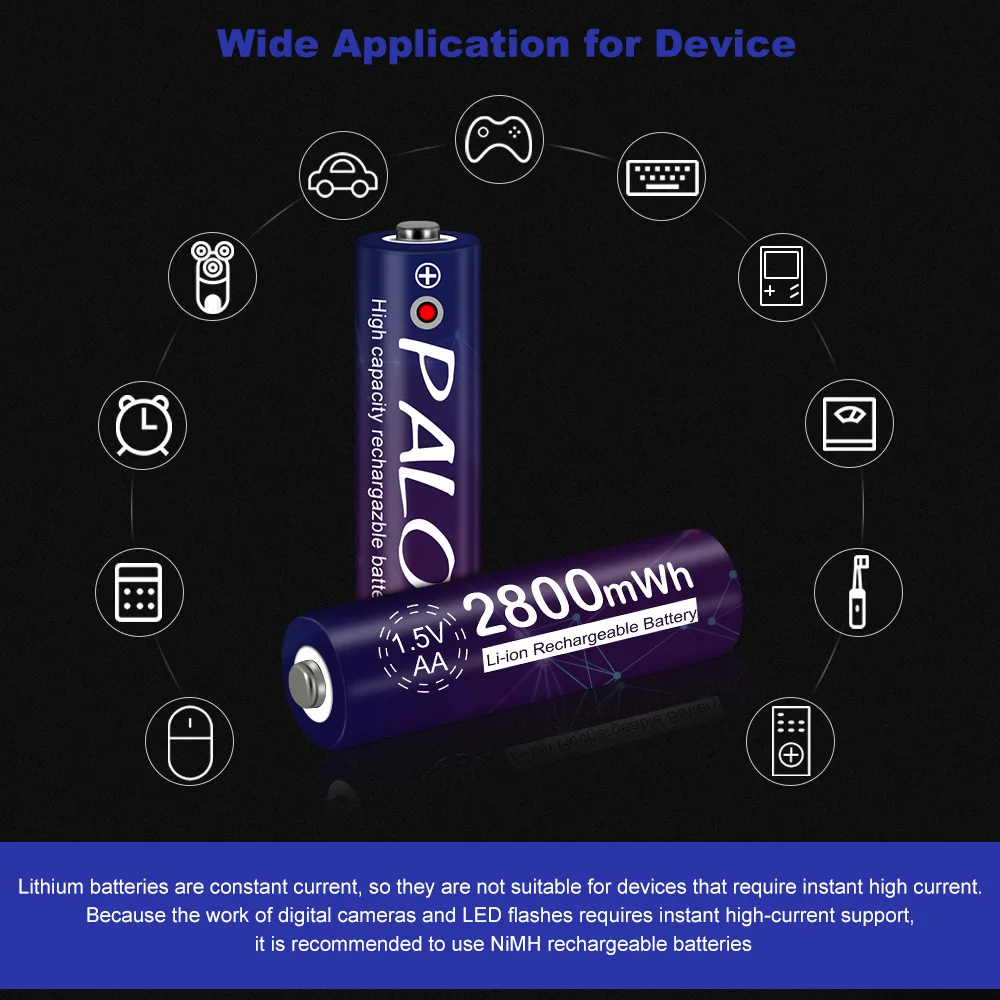 Литиевая батарея Palo 1,5 в AA, перезаряжаемые литий-ионные батарей...