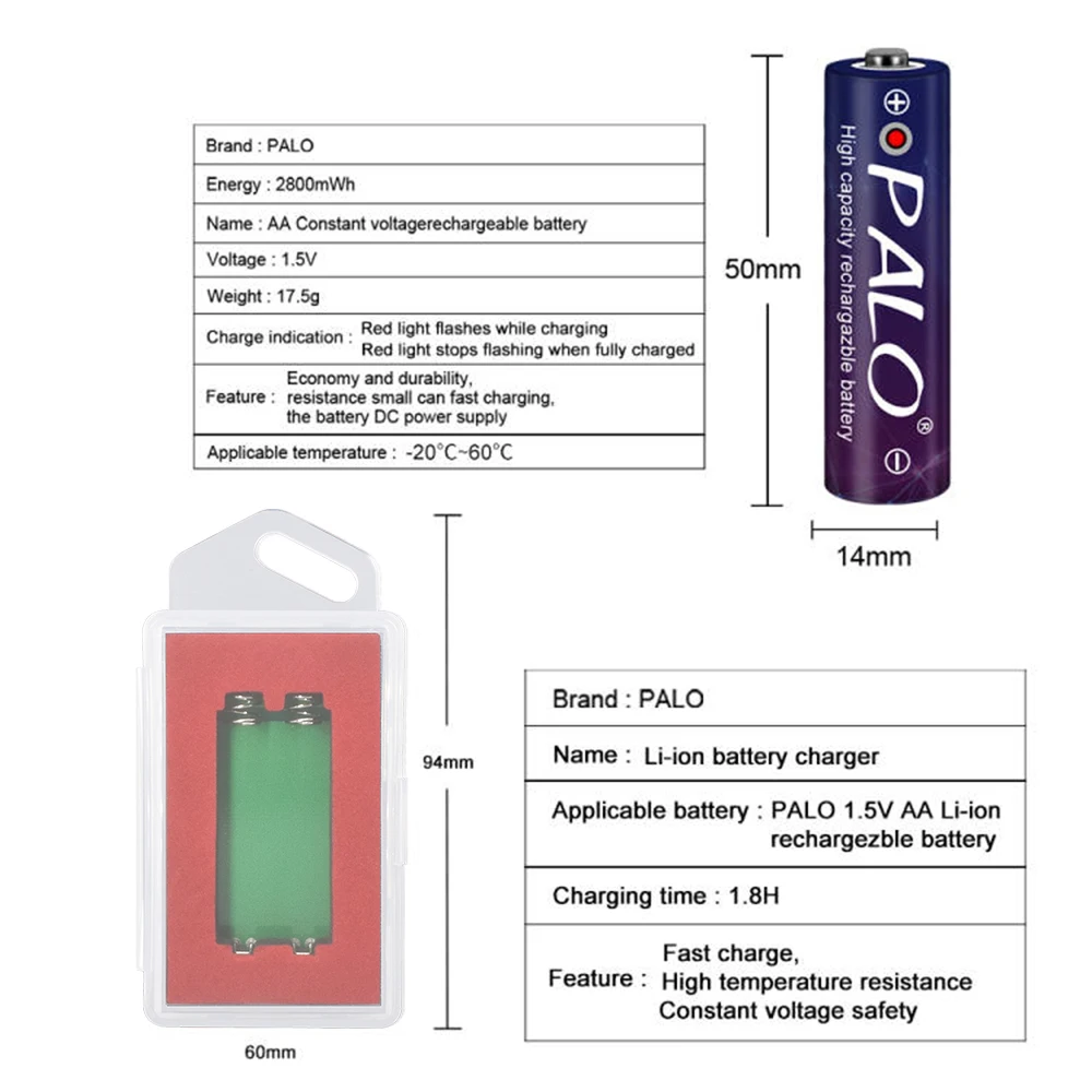 Литий-ионная аккумуляторная батарея PALO 1,5 в AA 1,5 МВтч в литиев...