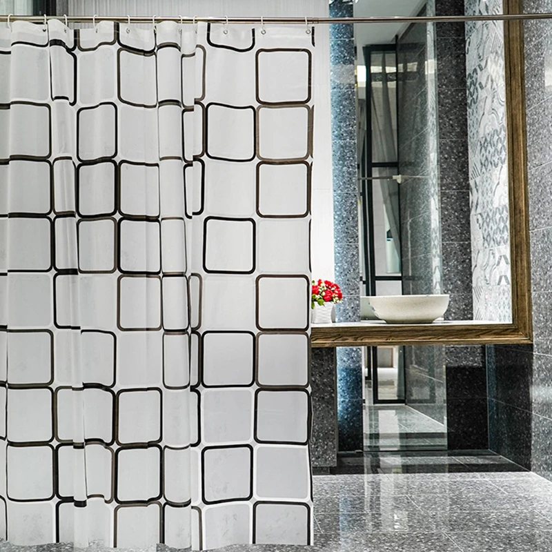 Занавеска для душа, водонепроницаемая, полупрозрачная, в клетку