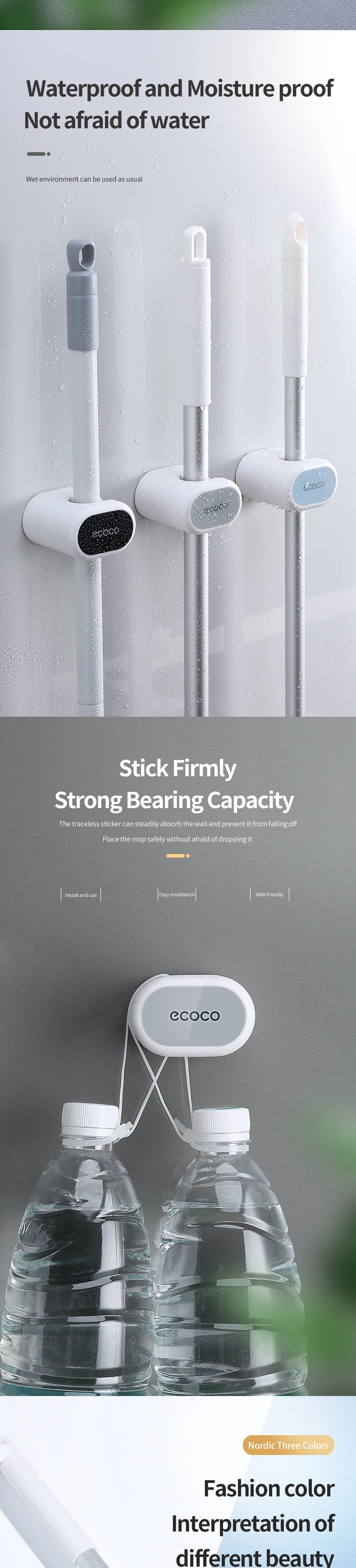 Настенный держатель для швабры ECOCO, самоклеящаяся вешалка для мет...
