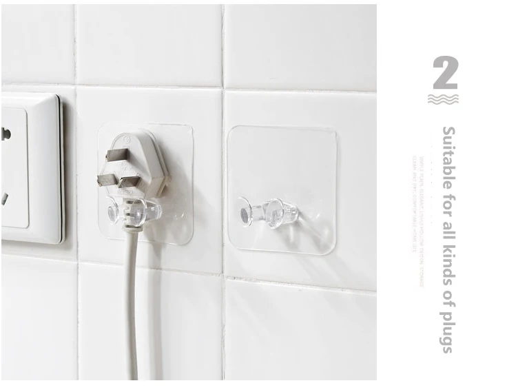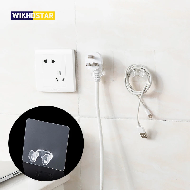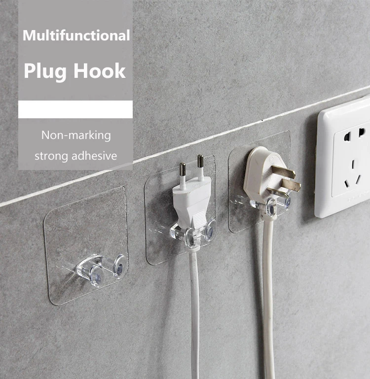 WIKHOSTAR 1/3/5/10 шт сильный клей крючки стены клейкая вешалка Мощность штепсельная Вилка для хранения розетка настенный держатель прозрачные крючки