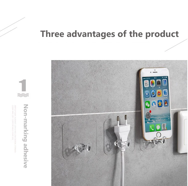 WIKHOSTAR 13510 шт сильный клей крючки стены клейкая вешалка Мощность штепсельная Вилка для хранения розетка настенный держатель прозрачные крючки