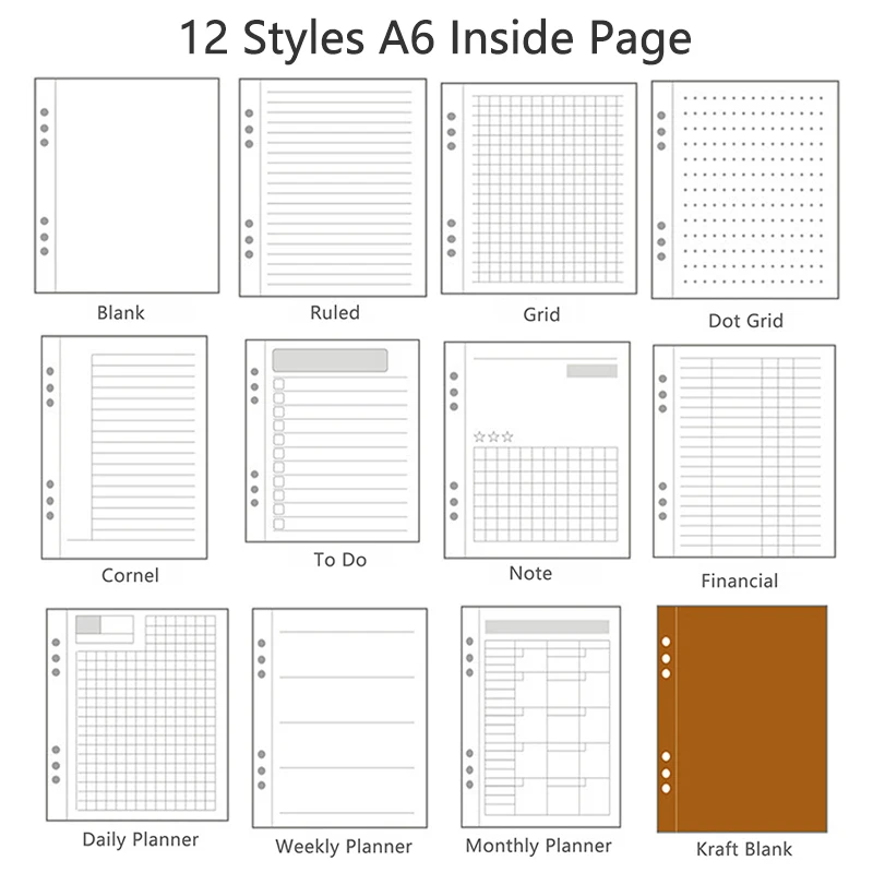 45 лист A6 Бизнес отрывными листами Тетрадь внутренняя Бумага CoreЗаправка внутренняя страница связующего внутренняя страница 6 отверстий внутри Бумага канцелярских принадлежностей